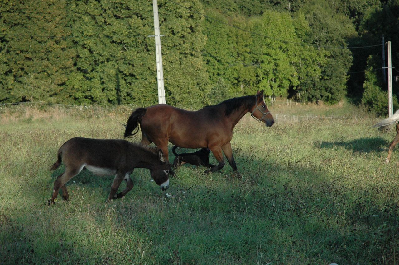 | Dire merci | voici donc kochka jument andalouse de 13 ans et harmony jument sf de 16 ans Le père est visible monté par sa proprio sur le site internet suivant: www.marechalferrantallier.com/bourbonnais-dressage.html Il faut aller dans l'item chevaux, c'est le premier il s'appelle Piccolo etalon gris (j'ai vu ses papiers et son père est bai brun et sa mère est noir pangré, il tient sa robe de son arrière grand mère maternelle. J'espere donc avoir un poulain foncé, mais bon la génétique?) |