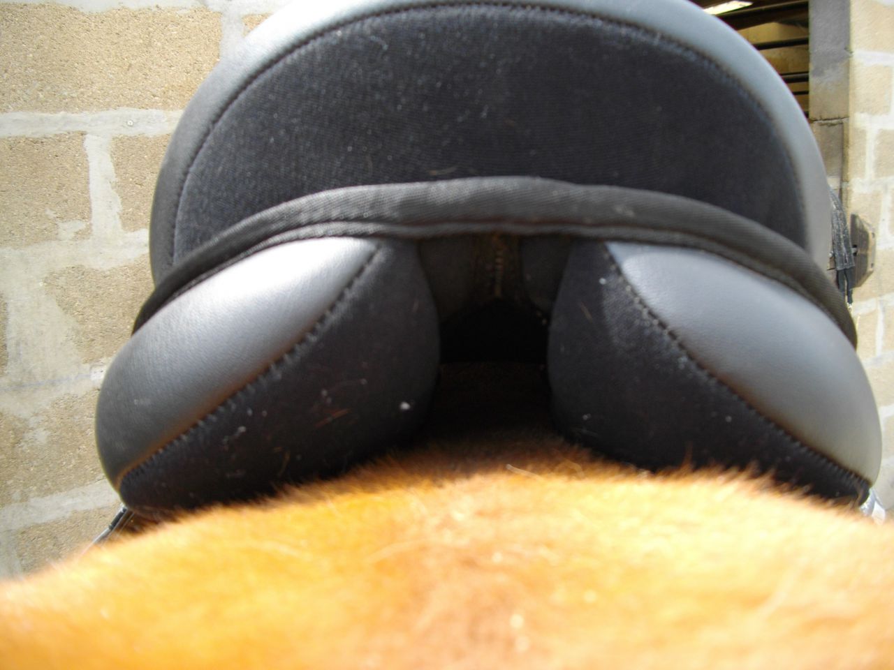 | Dire merci | Merci pour vos conseils, je vais essayer de trouver un mesureur d'arcade wintec, c'est ce qui a de mieux a faire. Sauf si SDE peut m'en trouver un Mon cheval a déjà eu beaucoup de problèmes de selles.... Les poils de son dos sont devenus blancs à cause de l'utilisation d'un tapis HAF. Il n'a pas supporté la matière sympanova (je sais pas si ça s'écrit comme ça). J'ai une barefoot pour les ballades et randos mais pour le travail en carrière, je préfère une selle qui travaille ma position, ma wintec J'ai une norton qui lui a blessé le dos : La gouttière était trop étroite pour lui et les matellassures pas adaptées et en plus je suis bancale..... ![]() La norton: ![]() |