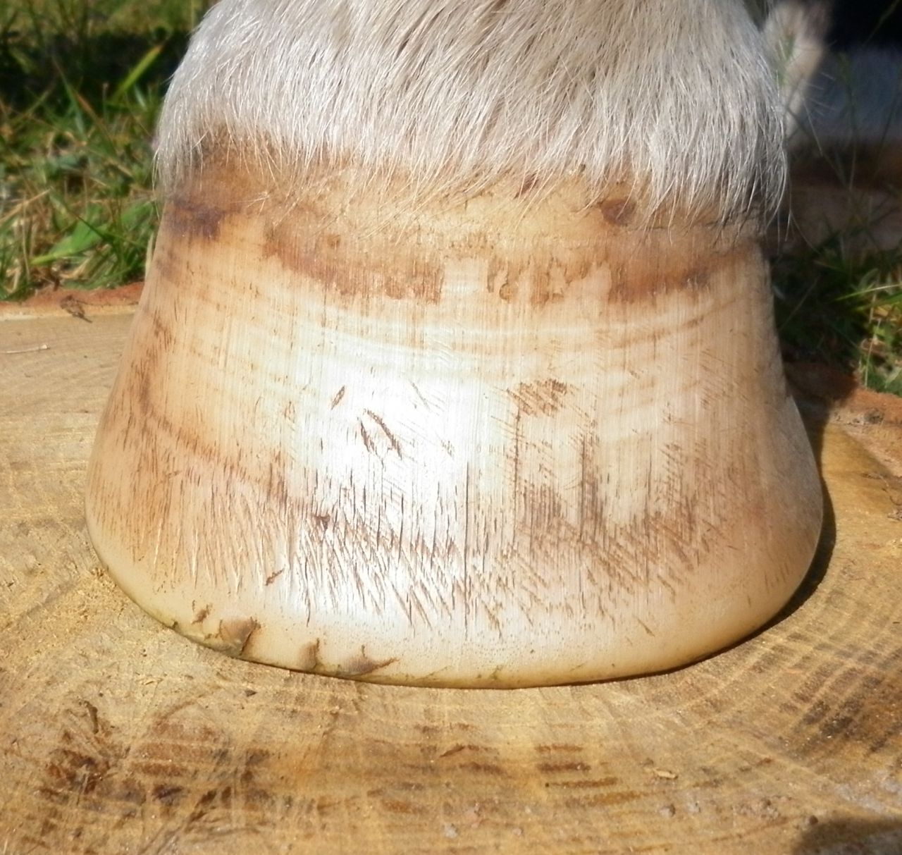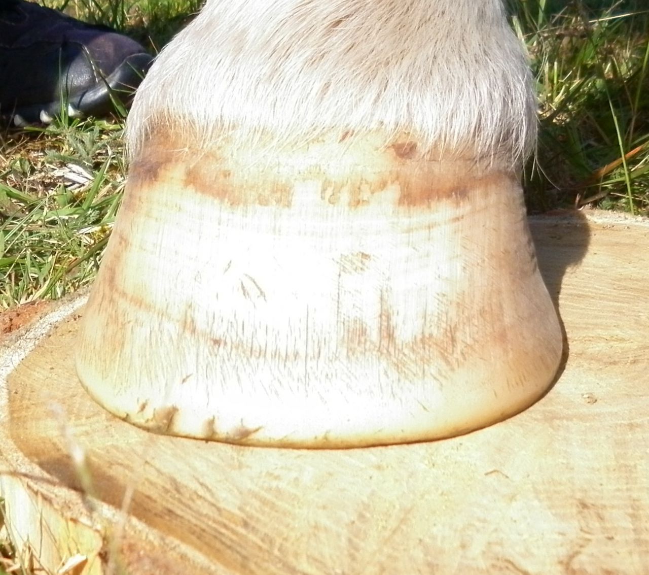 | Dire merci | Je suis partie pour lui mettre des eggs bars shoes avec talonnettes mais pas trop sure de moi, il a une super corne, très dure.Ca fait 15ANS qu'il est pieds nus et il a 26ANS.![]() |