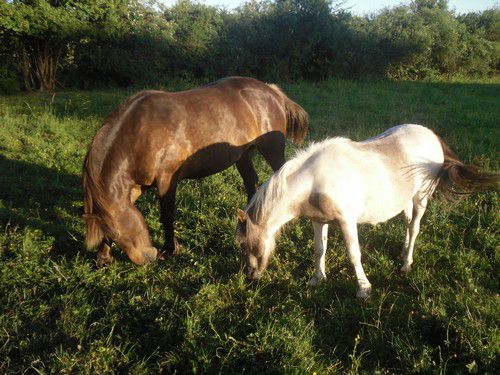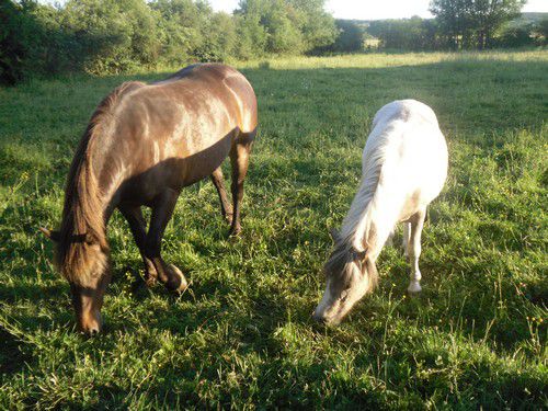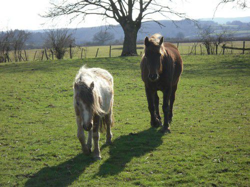 Déconnecté | oui, les mères étaient grises aussi. ![]() pour répondre à ta question sur l'embompoint, c'est le genre de chevaux qui grossit rien qu'en regardant l'herbe pousser. Ils mangent peu (2 litres par jour + un peu de foin le soir) et ils sont toujours gras comme des loukoums, même à la sortie de l'hiver. |