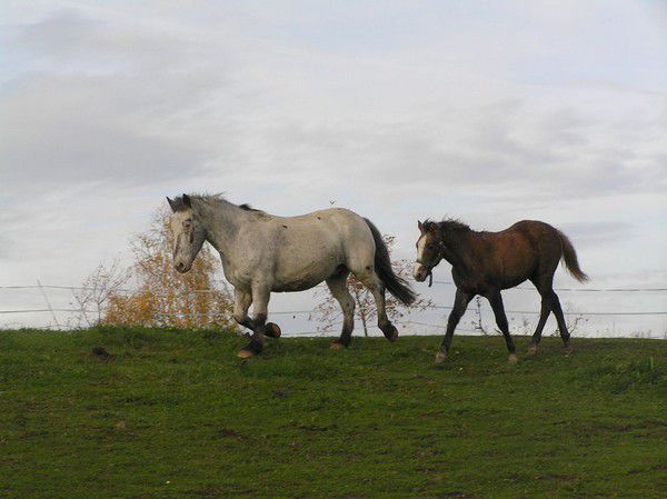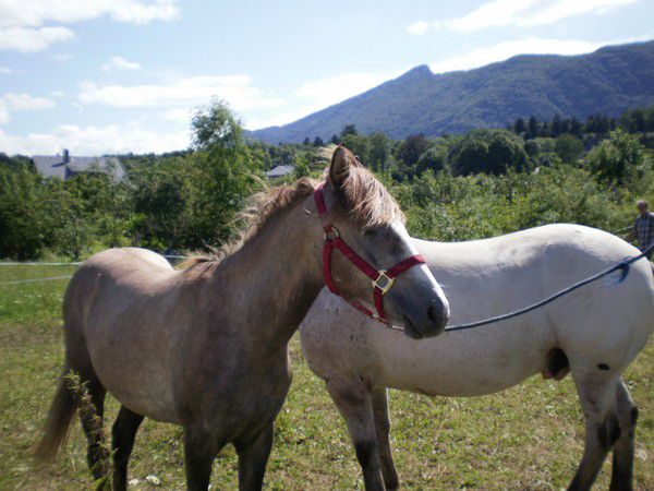 | Dire merci | mdrrrr voilà le petiot depuis sont arrivée à aujourd'hui: Avec sa moman: ![]() A 4 mois (deuxieme visite a l'éleveur) on dirait un dromadaire mdr: ![]() Le jour de son arrivée: découverte du pré et de mon autre cheval qui a fait une nounou très laxiste: ![]() ![]() A 1 an et demi: ![]() 2 ans: ![]() Et cette année: ![]() |