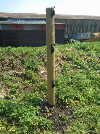 | Dire merci | Pour les angles j'ai vu qu'il existait des isolateurs tendeurs d'angle Je pensais plutôt à 2 poteaux plantés à 45° et fixés au poteau à l'angle. |