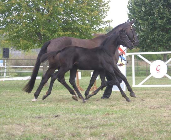 | Dire merci | Mon premier, j'ai aussi faillit le rater... On achetait un poney à deux, et il nous plaisait, mais un 2ans et demi quand on cherche un cheval prêt, ben ça ne va pas, donc on a pris un 4ans bien sympa. 2 semaines après l'achat, la fille qui l'avait avec moi m'a remerciée de lui avoir permis d'acheter SON poney et qu'elle le garde... ( par soucis de commodité il n'y avait que son nom dessus...) Nos parents se sont entendus et les miens ont été remboursés... Mais je me retrouvais toute seule... Je suis retournée à l'élevage et ils ont accepté de me prendre en stage. j'ai donc pu m'occuper de Fier (le 2 ans de l'époque) et 6 mois après, mes parents me l'ont offert ! J'ai continué d'aider à l'élevage plusieurs années et complètement craqué sur un pouliche... De toute beauté, on s'entendait super bien... Mais pas les moyens... Elle a été vendue en Suisse, mais j'ai le plaisir de voir des nouvelles régulièrement (elle tourne en compétition, et je n'aurais pas pu lui offrir cette carrière à l'époque...) Et il y a 3mois... J'ai eu comme une "révélation", un peu comme erzebeth, je me suis rendu compte que ma pouliche (née chez moi en 2009) serait probablement LA jument de ma vie... Affaire à suivre ! |
