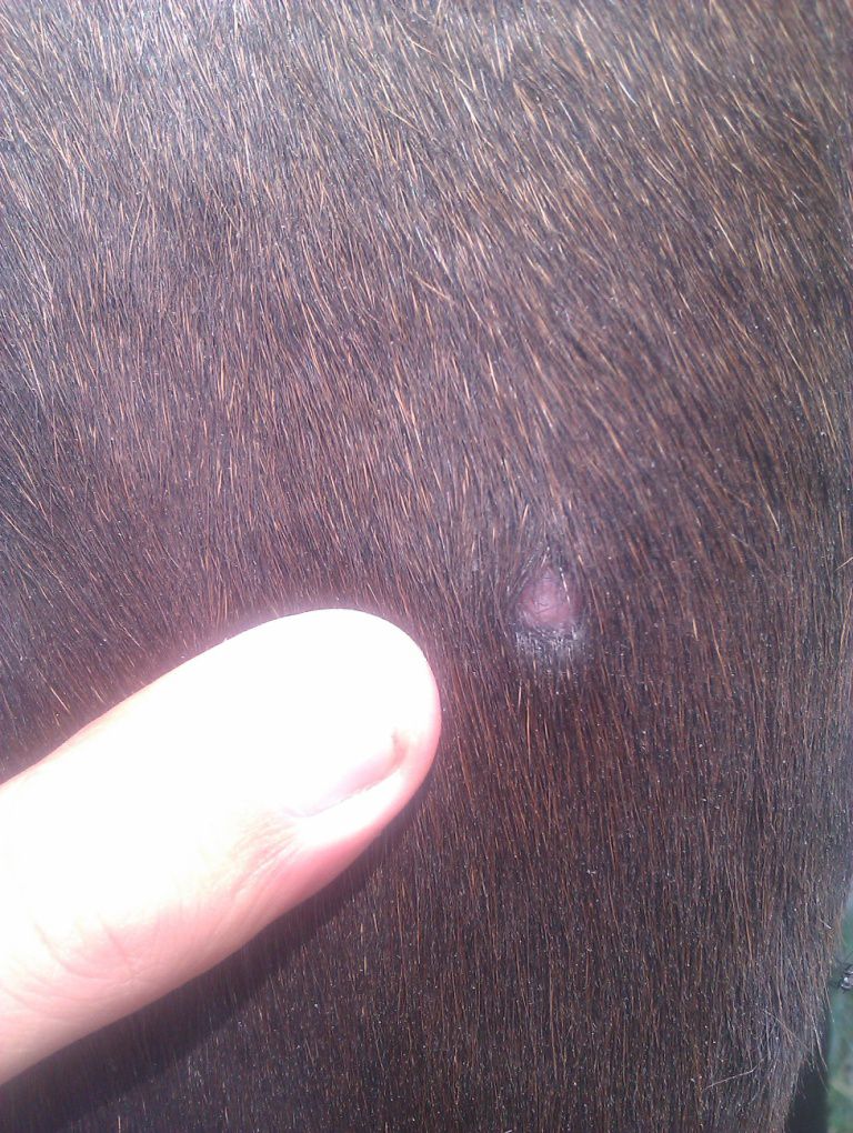 | Dire merci | mon poney fait des trucs comme ça parfois, moi je pense que le truc jaune ça doit etre de la lymphe séchée qui suinte de piqures de bestioles, il y en avait toujours au niveau de la piqure des tiques. enfin moi je pense ça en tout cas ça m'a jamais vraiment inquiété. |