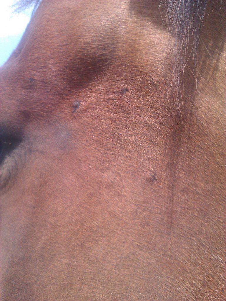 | Dire merci | Bonjour à tous, J'ai changé mon cheval de pré depuis 1 semaine, il est maintenant dans un grand pré avec 4 poneys dans les marais (pas loin de Pornic) J'ai remarqué qu'il avait partout sur les membres des toutes petites croutes avec un truc jaune collé dessus, il en a vraiment beaucoup. Et sur la tete il a aussi des petites croutes legerement plus grosses, qui sont assez ronde quand je les enleve. Par contre il en a beaucoup moins. Je vous mets les photos ![]() ![]() ![]() ![]() |