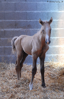 | Dire merci | Tous les palominos naissent + ou - alezan ( à savoir que svt à la naissance, les crins sont pas bcq plus clairs que le corps ; le "visuel" alezan est d'autant plus prononcé que la teinte palomino va être dorée )Mais les palos 'visuellement" alezans à la naissance sont des futurs palos très foncés ( avec une teinte or généralement ) et du coup je vois pas très bien comment celui-ic pourrait être aussi clair à 4 mois s'il était bêtement palo ... Et cf explication au dessus : il ne peut pas être palomino grisonnant s'il est né " visuellement alezan" ; les palo futurs gris ont eu une teinte fumée caractéristiques à la naissance il est impossiblle de les prendre pr des alezans ![]() |