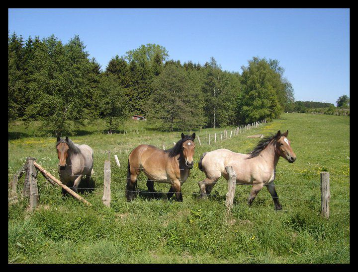 | Dire merci | Il est très joli ton cheval Arwen Vertige, attends moi j'ai grandi dans les ardennes belges et ce que j'ai vu comme ardennais c'est ça (photo prise moi meme): ![]() alors laisse moi le bénéfice du doute, je trouve que ces chevaux font plus "trait" que le tien, rien qu'à voir la croupe (double) et la massivité générale ! De toute façon on voit de tout dans les classé "trait" ou "demi-trait". |