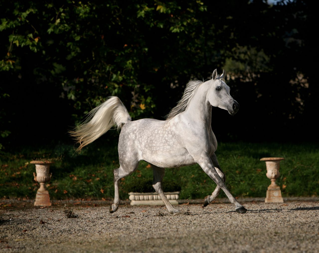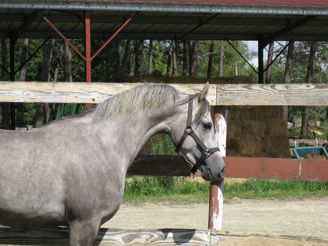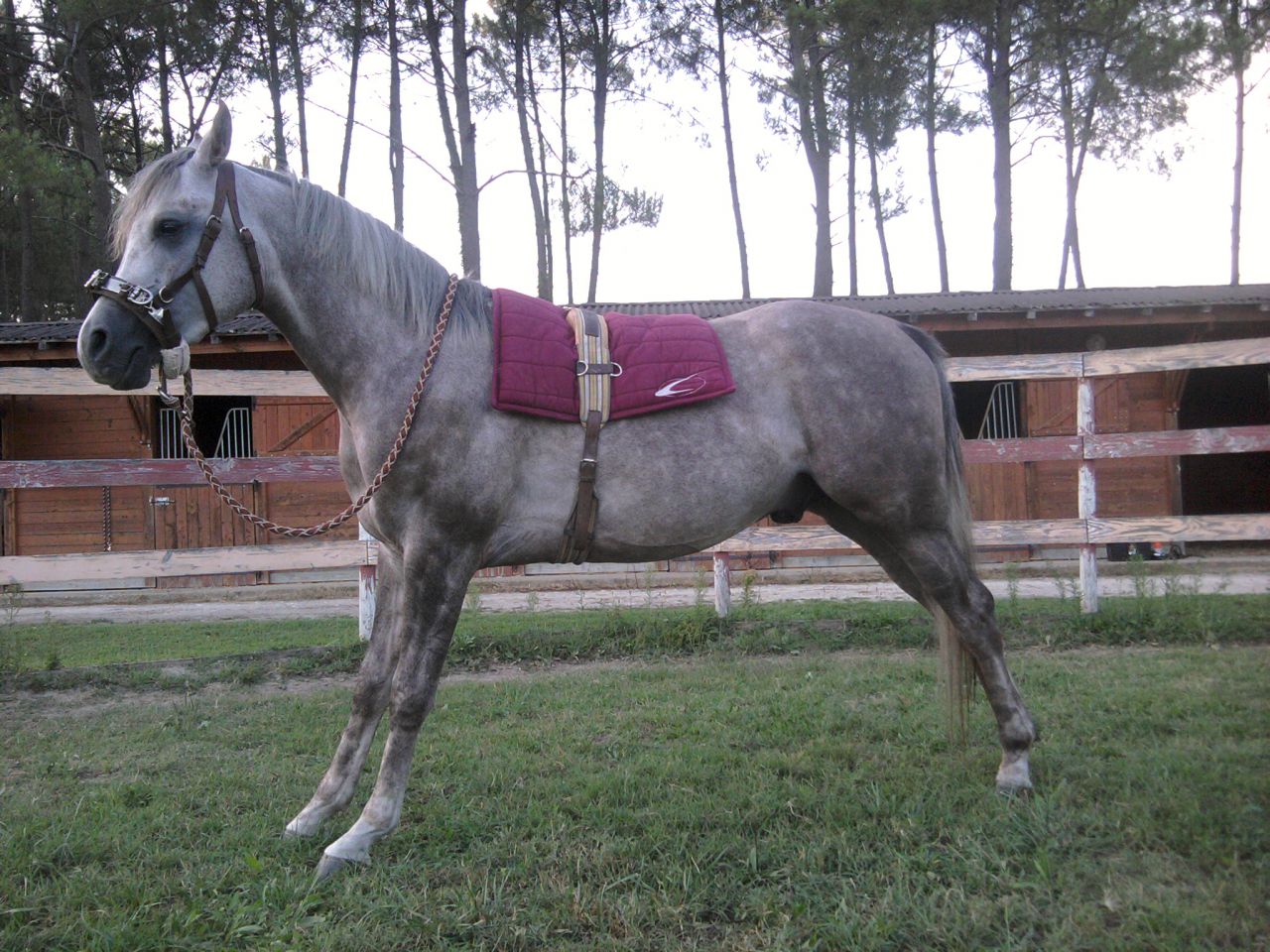 | Dire merci | Merci , merci pour lui .... Faut dire que ça faisait plus d'un 1 an que je cherchais un arabe , un bai ... et j'ai jeté mon dévolu sur ce gris !! C'est quoi le poste des " V"? Il est de février , donc plutôt précoce sur la saison. Il doit toiser 1.50m. Concernant son modèle , j'éspère que la castration ne lui portera pas préjudice et qu'il restera avec une belle encolure et poitrail large. En photo , sa maman , Hawanem: ![]() ![]() |