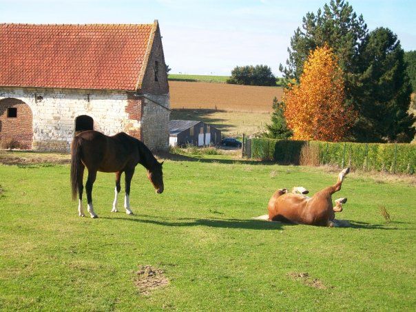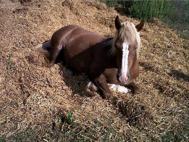 | Dire merci | J'adooooore ! Ils sont chou $x !! Le matin en partant au boulot ma voiture n'arrive qu'a faire bouger une oreille aux juments de trait de mon voisin (mére et pouliche)qui sont rétamées dans la pature en train de réver !!! J'adore !!! Je les traite de grosses en ouvrant ma fenétre de voiture au passage !! " Encore au taquet , les grosses !" que je leur dis ! |