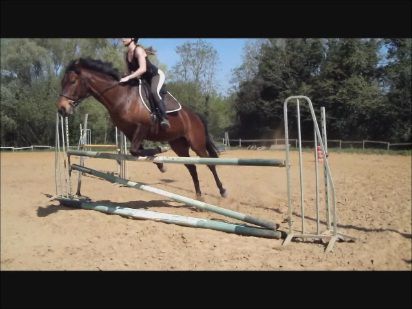 Dire merci | Colnat: sur ta photo c'est un exercice de trail (équitation américaine). Les barres sont rapprochées car il faut le passer au pas uniquement. Si on veut trotter dessus, il faut doubler la distance et la tripler pour les passer au galop. Mais le but n'est pas de sauter, le cheval ne doit "juste" pas toucher les barres (un "ponck"= un point de pénalité). |
