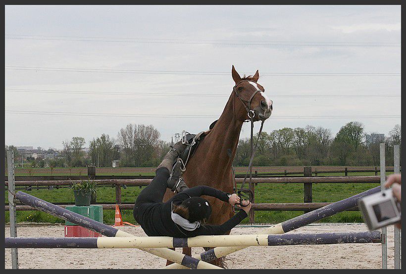 | Dire merci | Rhôôô, purée, y'a de ces photos!!! ![]() Le truc du chandelier, je parie que Zukko est capable de faire pareil Le poney sous la barre, excellent!! Le cheval de mon père (genre Irish Cob) passait s'arrêtait devant la barre, passait tranquilou les antérieurs et puis bondissait pour passer les postérieurs, tout un art...J'ai jamais réussis à le faire passer correctement... ) |