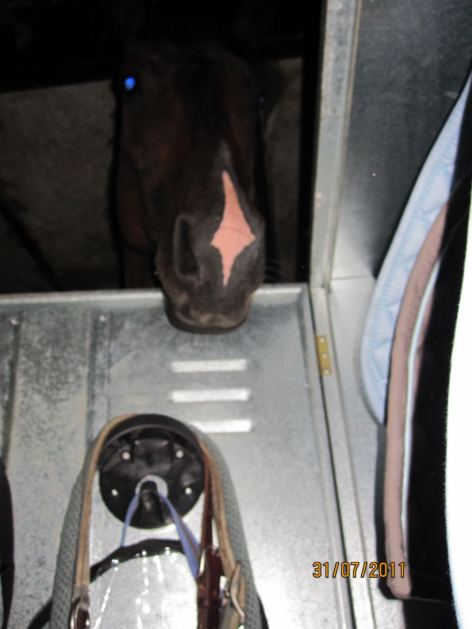 | Dire merci | La Mienne en photo, prête pour une scéance visant à expliquer au shtroumph derrière elle que : non, non, on a rien à faire dans la bulle d'un cheval monté... |