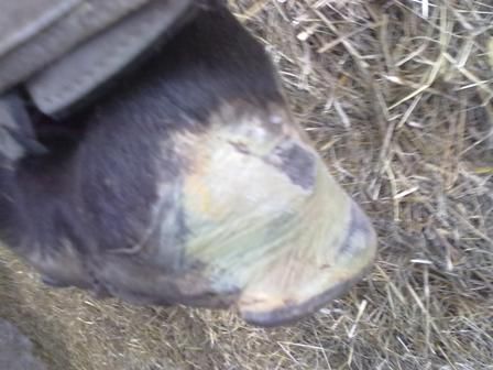 DéconnectéDire merci | Il est clair qu'il appartient à ton marechal de te conseiller. Si tu regardes bien ma photo, tu verras que le marechal à procédé à une suppression d'appui au niveau de la seime de manière à solliciter au minimum cette partie du pied et favoriser la reconstruction. A mon sens , il ne faut pas le laisser pieds nus. Demande à ton maréchal et tiens nous au courant |