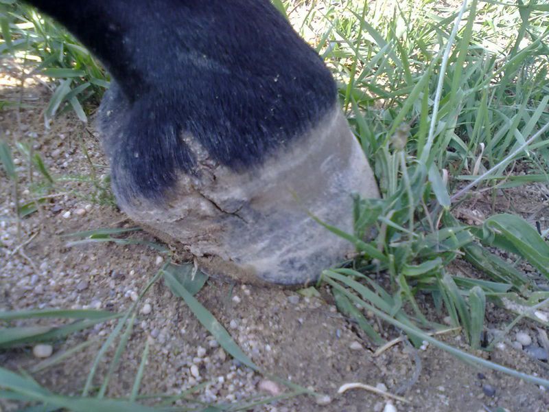 | Dire merci | une amie a eu le même probléme, mais beaucoup plus pret du talon ( il c'étais forger un peu trop fort!) la corne n'avait pas fait de seime au debut, mais elle devait être plus fragile, donc on va dire 2-3 mois aprés le sabot a cassé 1cm en dessous de la couronne. Le maréchal l'a arrêter une première fois comme une seime, mais ca c'est agrandit(le pied grinçais), dés que le pied a été assez long, il a retiré le talon pour que ca ne s'agrandisse pas et qu'il n'y ai plus de pression dessus. Par contre interdiction de faire des terrains dur et de l'obstacle temps que ce n'étais pas repoussé. (du coup carriére.) Mais c'est toujours galére les seime de ce type. |