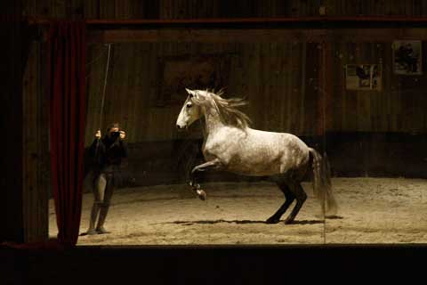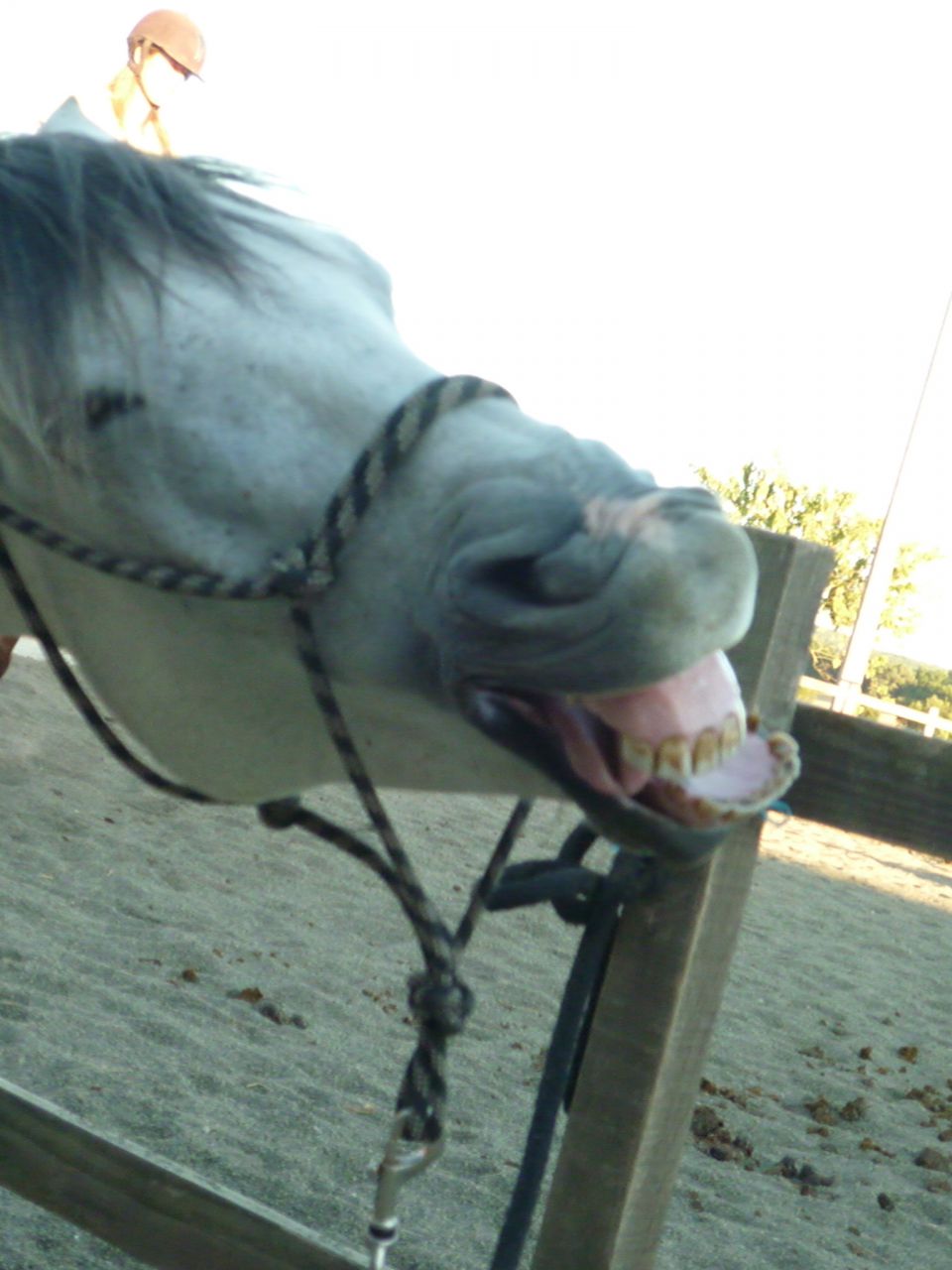 Elle était au galop et moi assise par terre,j'attendais qu'elle passe à coté de moi pour donner ça
