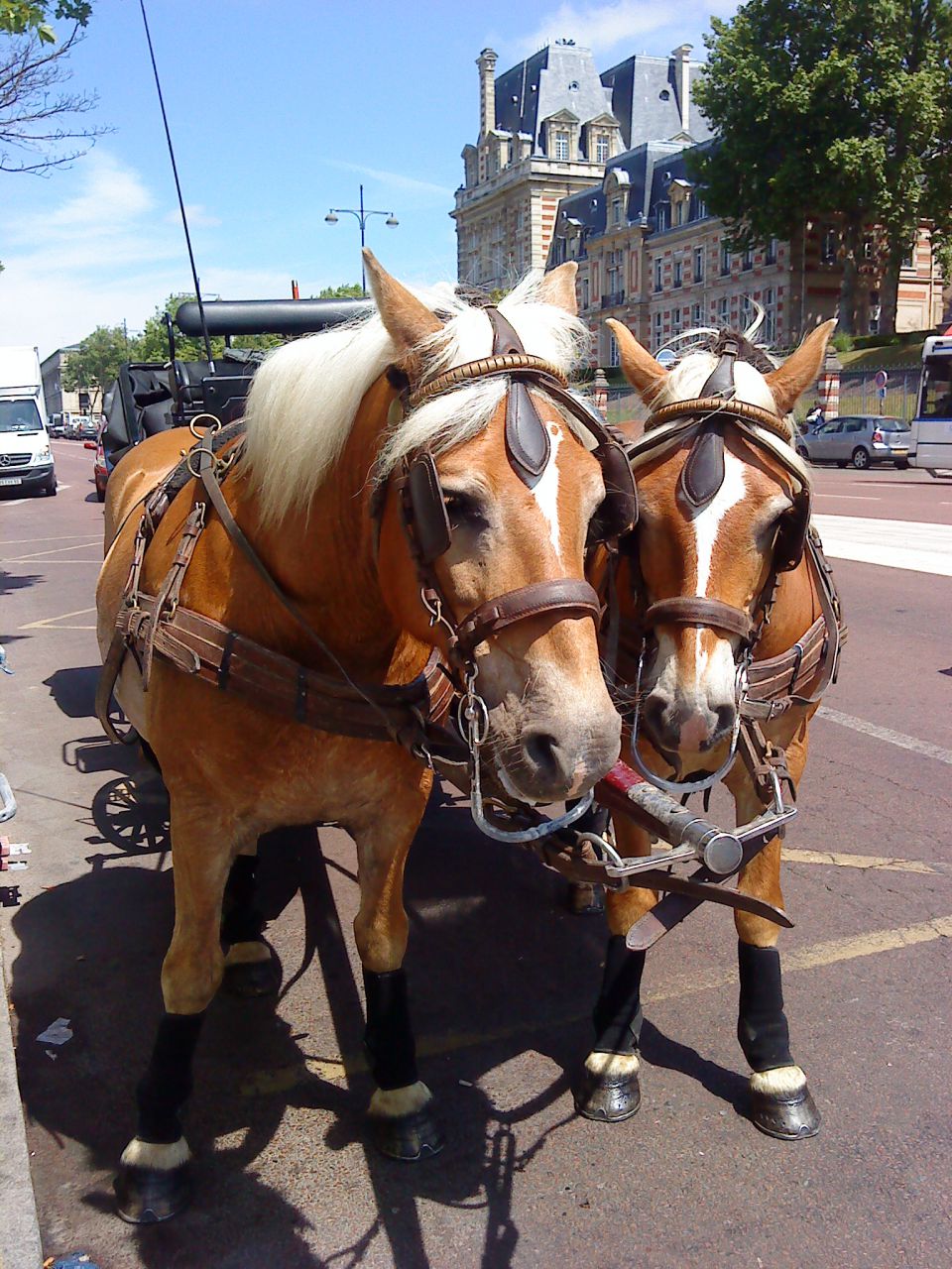 | Dire merci | Hé non Casimir, les chevaux ne sont pas interdits, contrairement à ce qui se raconte depuis des décennies. Il n'y a jamais eu aucune trace d'arrêté préfectoral en ce sens mais par contre, une légende suffisamment tenace pour qu'effectivement, on n'y trouve pas la moindre calèche (remarque, vu la circulation et ce que signifie "vie parisienne" pour un cheval, tant mieux, pauvres chevaux...) |