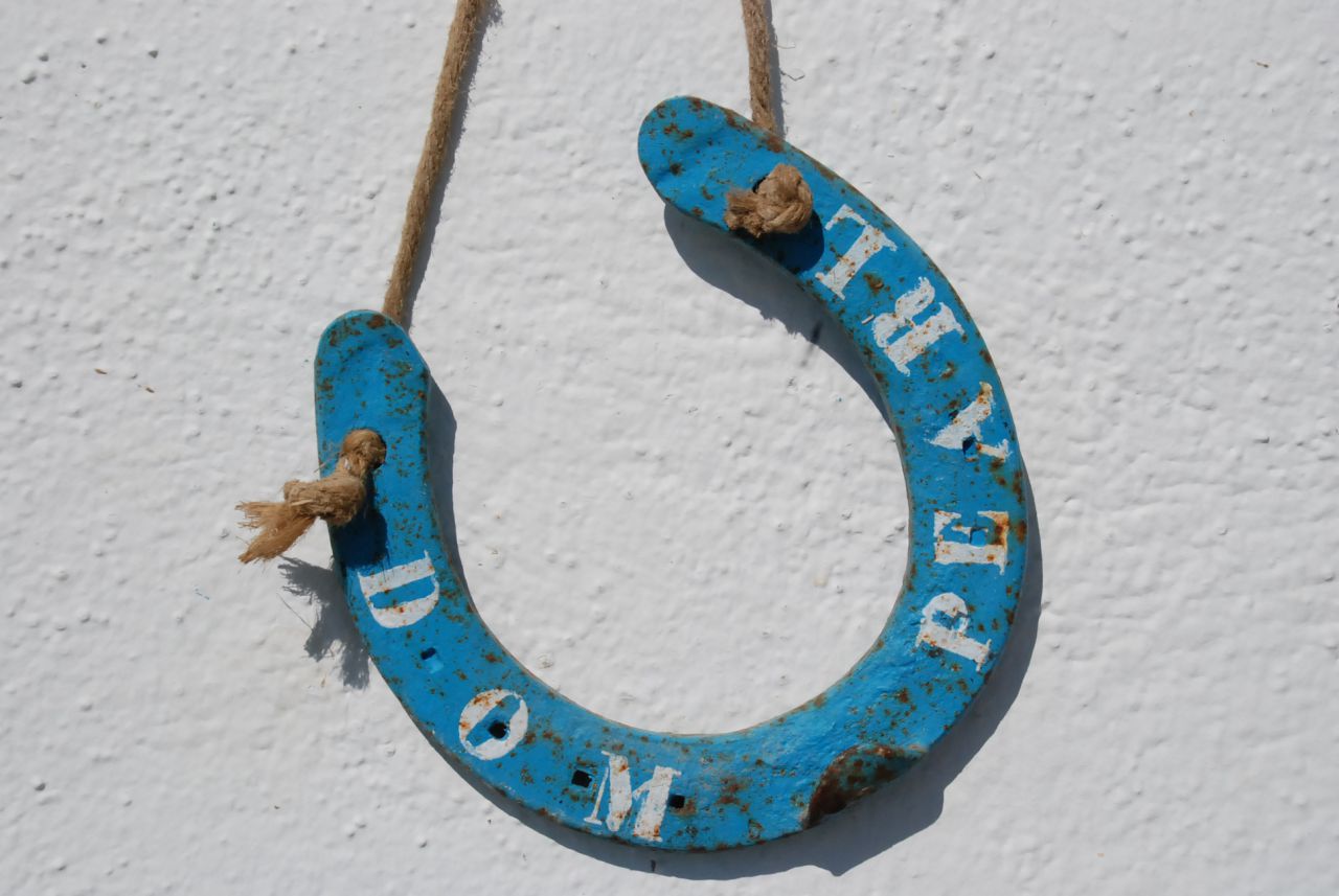| Dire merci | nous on a fait ça :![]() avons laissé 2 trou pour la fixer à la porte du box, et la photo (protégé avec les films photo qu'on trouve partout) est changeable! il faut : un vieux fer (poncé et vernis), des clous marechalerie, derriere la photo se trouve une petite plaque en bois a la forme du fer... bon courage... |