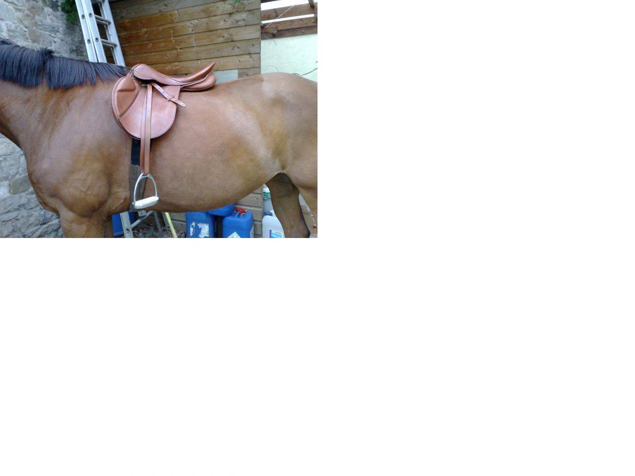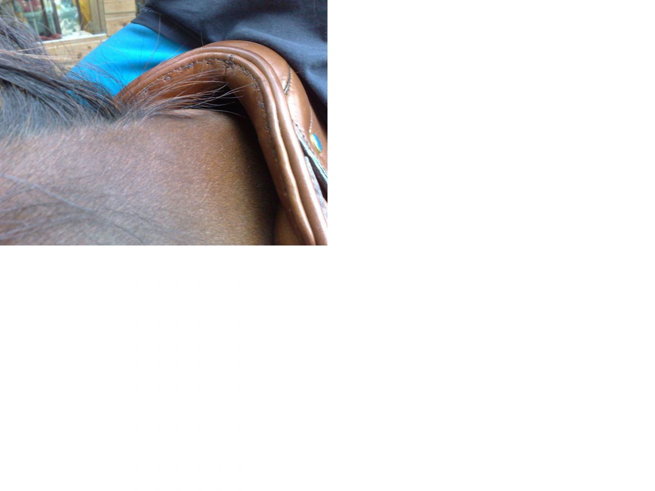 DéconnectéDire merci | Moi j'ai vu la selle en vrai, l'ouverture de garrot convient, la selle se place derrière l'épaule et devant les dernières côtes; MAIS c'est comme si la hauteur de pommeau ne convenit pas (trop basse) du coup la jument, qui a un garrot haut, long et bien marqué, se retrouve avec le dessus du garrot à 1 cm du dessous de l'arcade... Faudrait (on en avait discuté) un pommeau "nez coupé" ou un pommeau de selle maclellan (tu vas faire fureur en concours) |