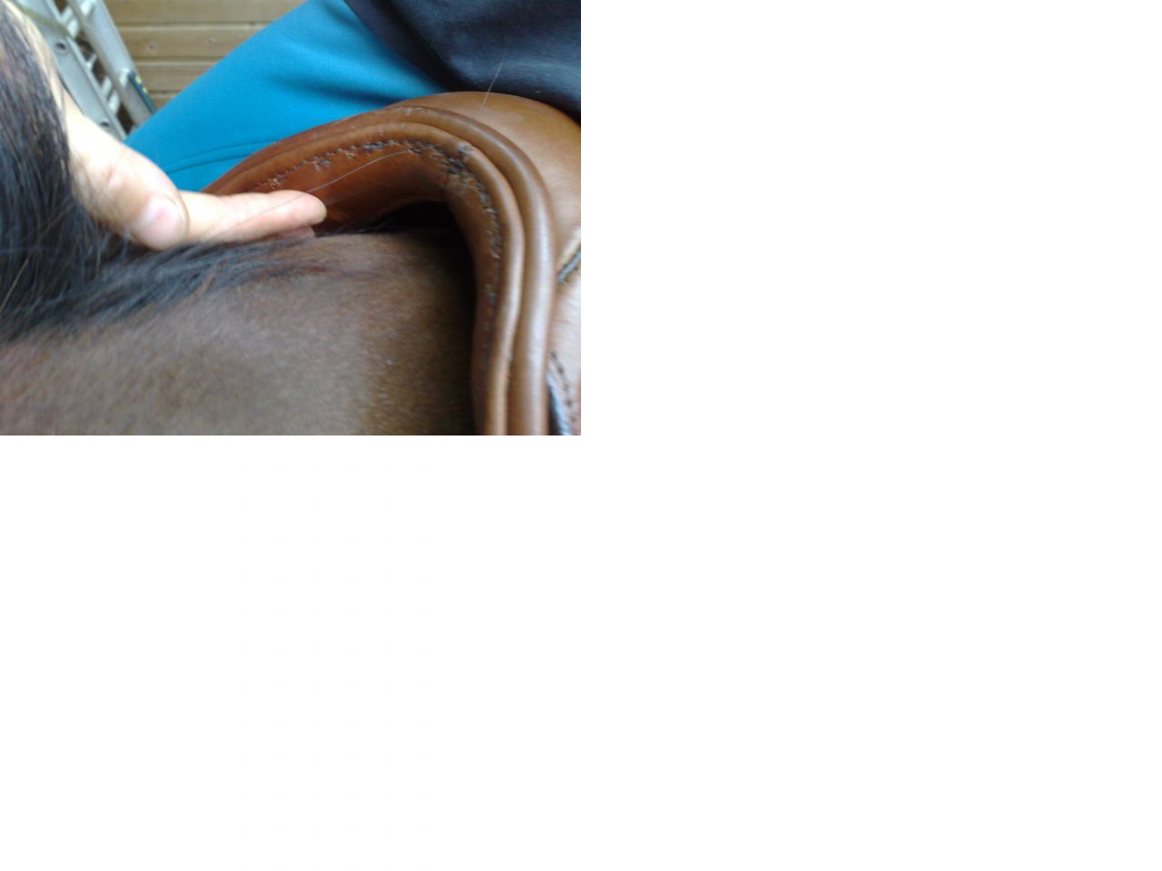 | Dire merci | pour savoir si tu es juste pose ta selle sur le dos, glisse ta main à plat sur le garot et tu dois passer ta main sans qu'elle soit coincée jusqu'à ce que tu sentes la base du garot, et donc pousser ensuite ta selle pour qu'elle soit en place. ensuite tu sangles, et tu regardes si la selle revient en avant ou pas quand il marche. |