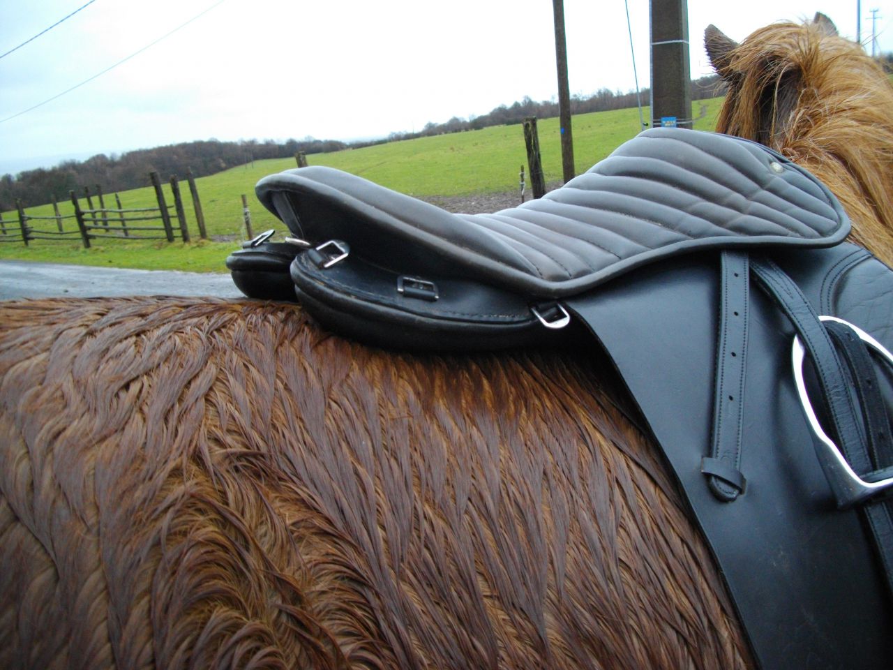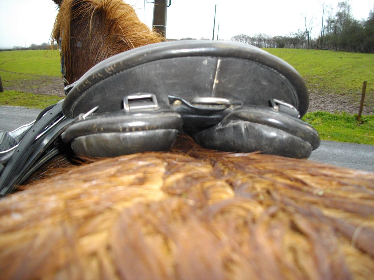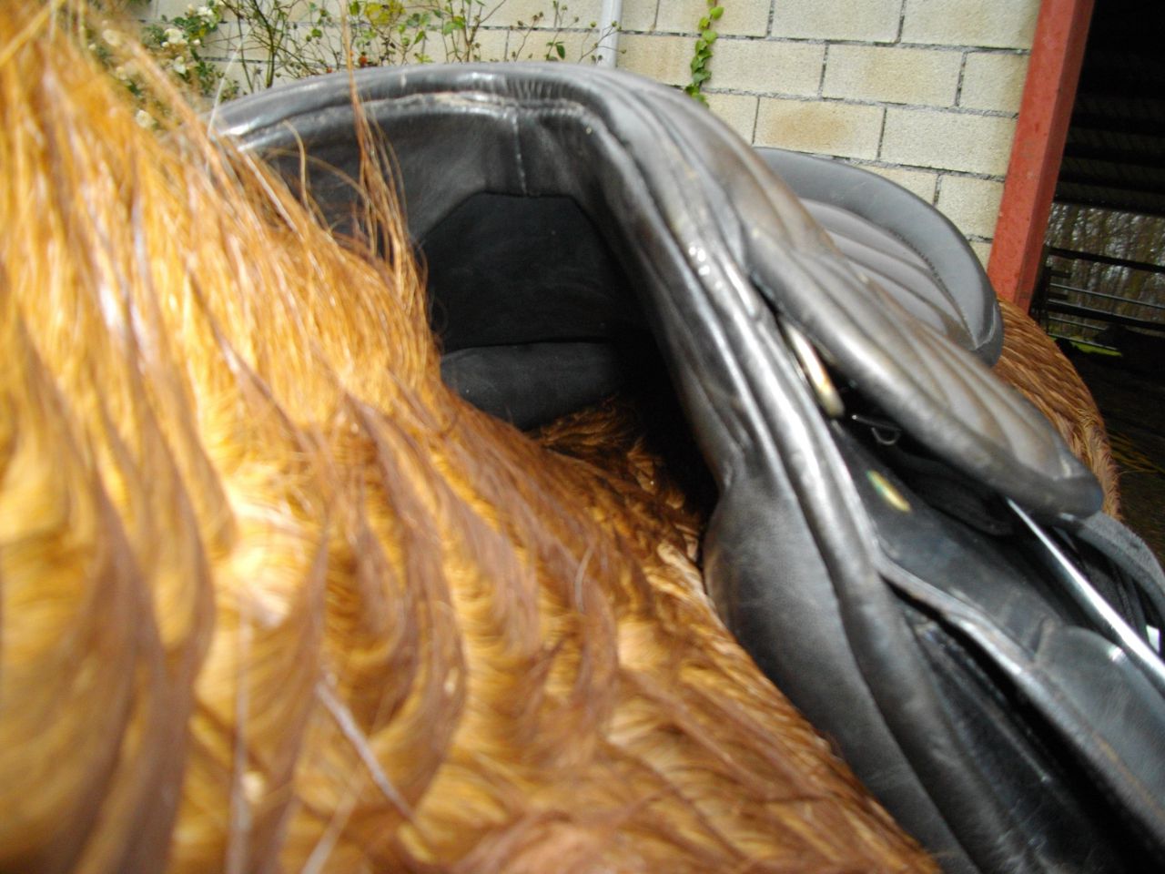 | Dire merci | Alors l'essai fait : la selle pose bien partout, ne bascule pas, ne tourne pas au montoir ![]() Mais comme il était trempé à cause de la pluie, j'ai pas pu analyser les traces de transpiration... Place au photos : pommeau surèlevé : c'est une selle islandaise ![]() ![]() ![]() ![]() |