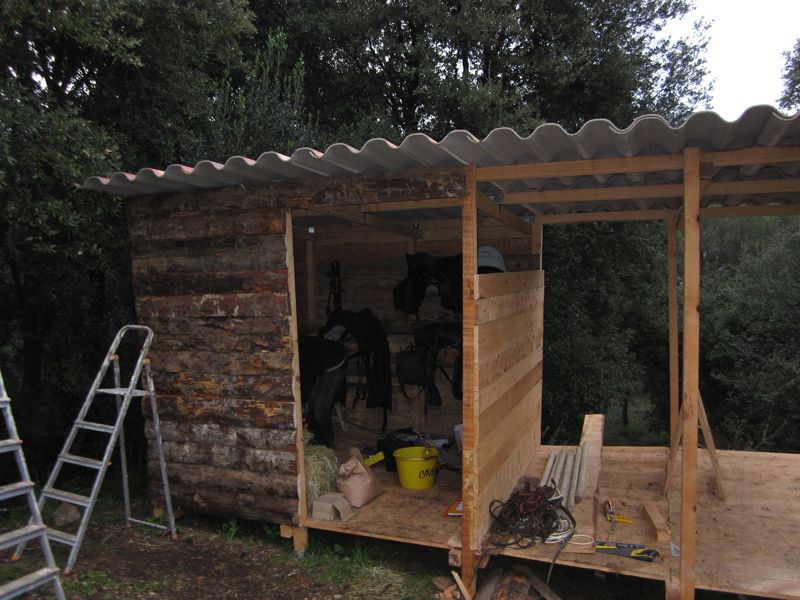 | Dire merci | et pourquoi ne pas mettre une vrai petite "sellerie" avec mon cheri on en a construit une tout en bois, on y stock tout selle, filet, bouffe, foin etc... ![]() ![]() dedans ![]() ![]() |