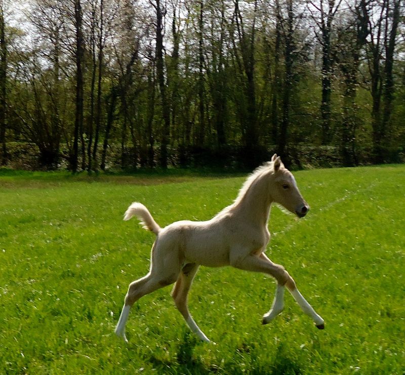 | Dire merci | il a une jolie couleur pour ceux qui aiment... après difficile de dire quoi que ce soit, les photo sont flous puis le poulain est en mouvement. En plus, à cet âge, c'est encore plus difficile de dire quoi que ce soit sur sa morpho ou autre parce que beaucoup de choses peuvent changer en grandissant. Les poulains c'est quitte ou double, faut oser l'aventure... ou pas !! Bonne chance en tous cas ! |
