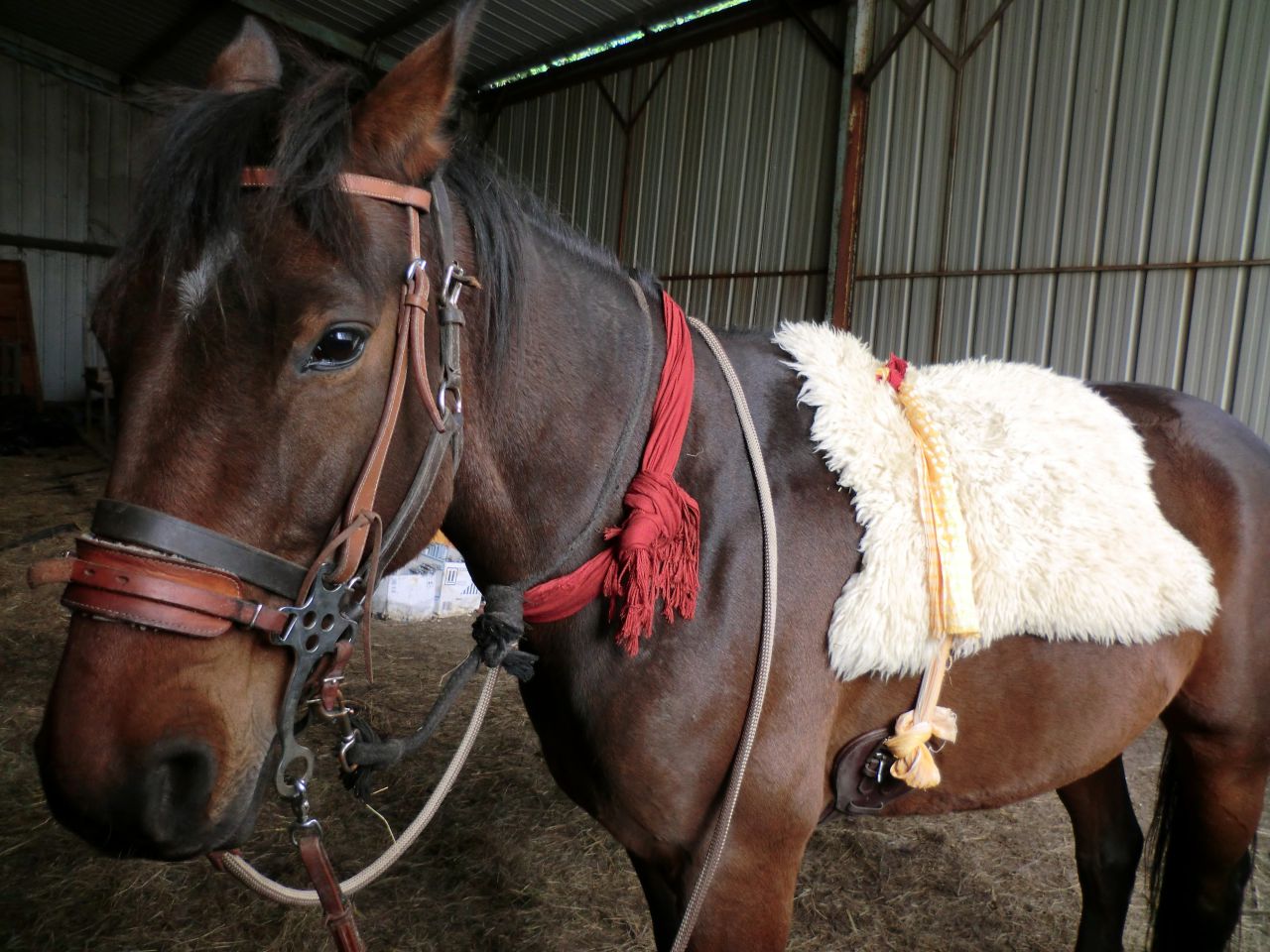| Dire merci | En effet ca la mais pas en valeur du tout Chaussure Kaporal Grise, chaussette noir/grise, Pantalon Noir/Gris. La jument n'est pas encore assortie car j'attend Noël,après elle sera en Blanc normalement, je précise ne pas ragerder plus haut que mes hanches, parce que après c'et plus assorti ... :/ : ![]() Et quand c'est vraiment pas assortie, moi aussi je peut le faire ! Photos demain, mais je peut déja vous dire a quoi ca ressemble: Muselaine Orange, tapis marron et beige, amortisseur bordeau, et le tour est joué ! |