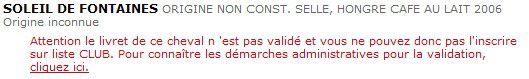 | Dire merci | bah non c'est a partir de 18mois pour la validation de la description graphique et pas de temps limité j'ai vendu un cheval ONC dont le carnet n'était pas validé et il avait 5ans a l'époque et ce cheval de 7ans aujourd'hui a fait une course d'endurance la semaine dernière ... pour faire valider ton carnet tu fais venir un véto autorisé a le faire , il va rectifier ou pas la description , tu vas renvoyer ton carnet au HN et labas ils te le valideront puis te le renverront (si il ne se perd pas dans leur paperasse lol ) Message édité le 16/10/11 à 21:19 Message édité le 16/10/11 à 21:21 |