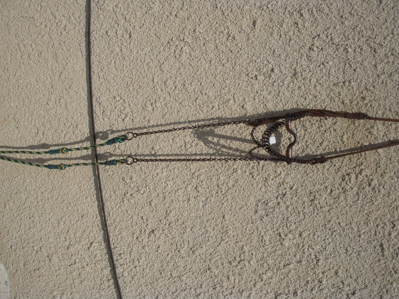 DéconnectéDire merci | ![]() ![]() ![]() voici un mors Mexicain, avec une gourmette à double anneaux ( les photos ne sont pas terribles) relié par des chainettes plus fines c'est le mème principe que le mors empire. L 'explication donnée au préalable n'est pas une affirmation, c'est une façon de faire donnée par des gens qui utilisent ce genre d'embouchure, toutes les idées sont recevables |