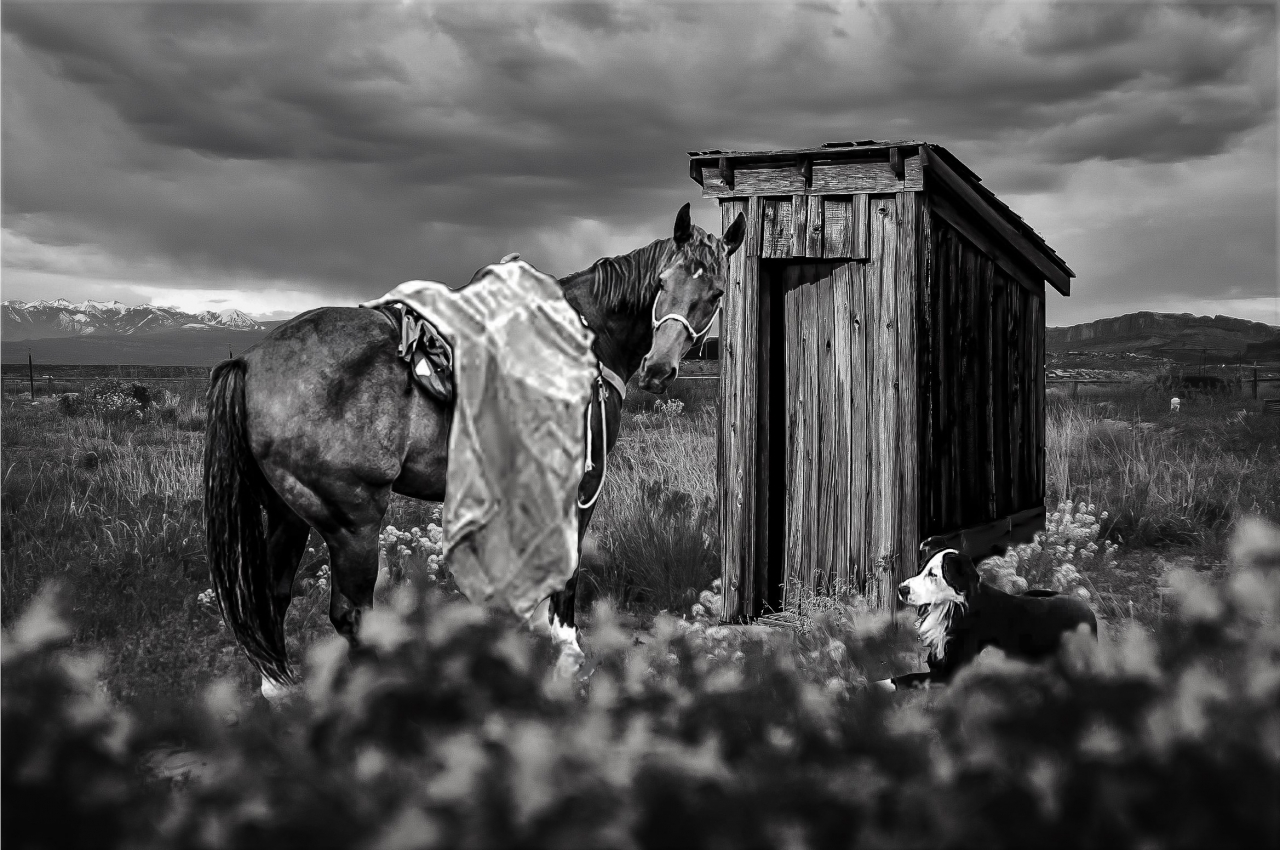 DéconnectéDire merci | il n'y a pas que le pseudo qui est drôle mais l'image aussi . c'est quoi exactement l'histoire de cette photo ? le pancho qui abrite le cheval de la pluie , le chien sous l'encolure et le cavalier dans la cabine des toilettes ? tout ça au milieu de la pampa ? |