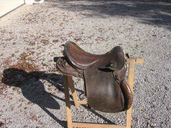 Déconnecté | à votre avis auprès de quel sellier l'armée de terre pouvait bien acheter ses selles ? je n'ai trouvé aucune marque sur la mienne. Les taquets sont fixés par vis, cuir de porc sur tout l'ensemble de la selle. Pas de passage d'étrivière ( ressemble à celle en photo ci-dessus ). |
