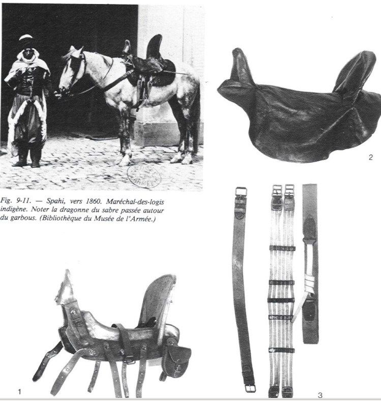 | Dire merci | Papyrus: je reprends car j'ai eu problème d'ordi. Pour ce qui concerne les selles à bande sèche, elles ont duré longtemps dans l'armée, jusqu'au modèle 1861/64, c'est à partir de la 1874 que cela change. J'ai beaucoup utilisé l'équipement que l'on voit sur la petite photo à gauche, la selle est du modèle 1786 de Hussard, elle est à bandes sèches et je n'ai eu qu'un seul problème de gonfle. Elle est posée sur la couverture pliée en 8. Une selle à bandes sèches pose moins de problème qu'une selle ou la garniture est mal ajustée, de plus il y a moins d'épaisseur et le cavalier est plus près du cheval avec tous les avantages que cela comporte. |