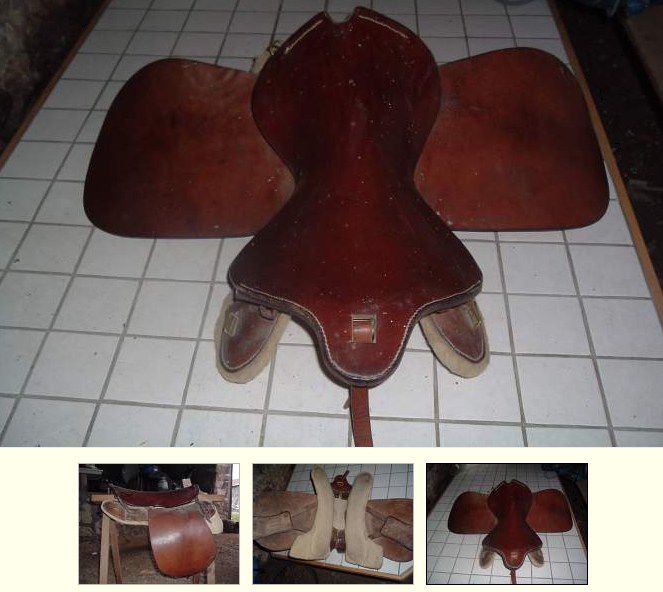 | Dire merci | selle à 20€ m'est réservée, enfin quelqu'un de sérieux NNOONNN???? A ce prix je pensait qu'elle serait déjà vite partie... Si je n'avais pas trouvé l'arçon de mulet,je l'aurais prise... mais il faut faire un choix Si je m'écoute,j'achète 3 ou 4 selles par mois 6 peaux de cuir et 250 babioles qui ne servent a rien! La selle de mulet (j'en doute) si elle correspond a ce que je pense... Je vais faire un montage simple avec une peau épaisse de mouton,sanglage en V et etriers bois... Je pense l'avoir la semaine prochaine ![]() |