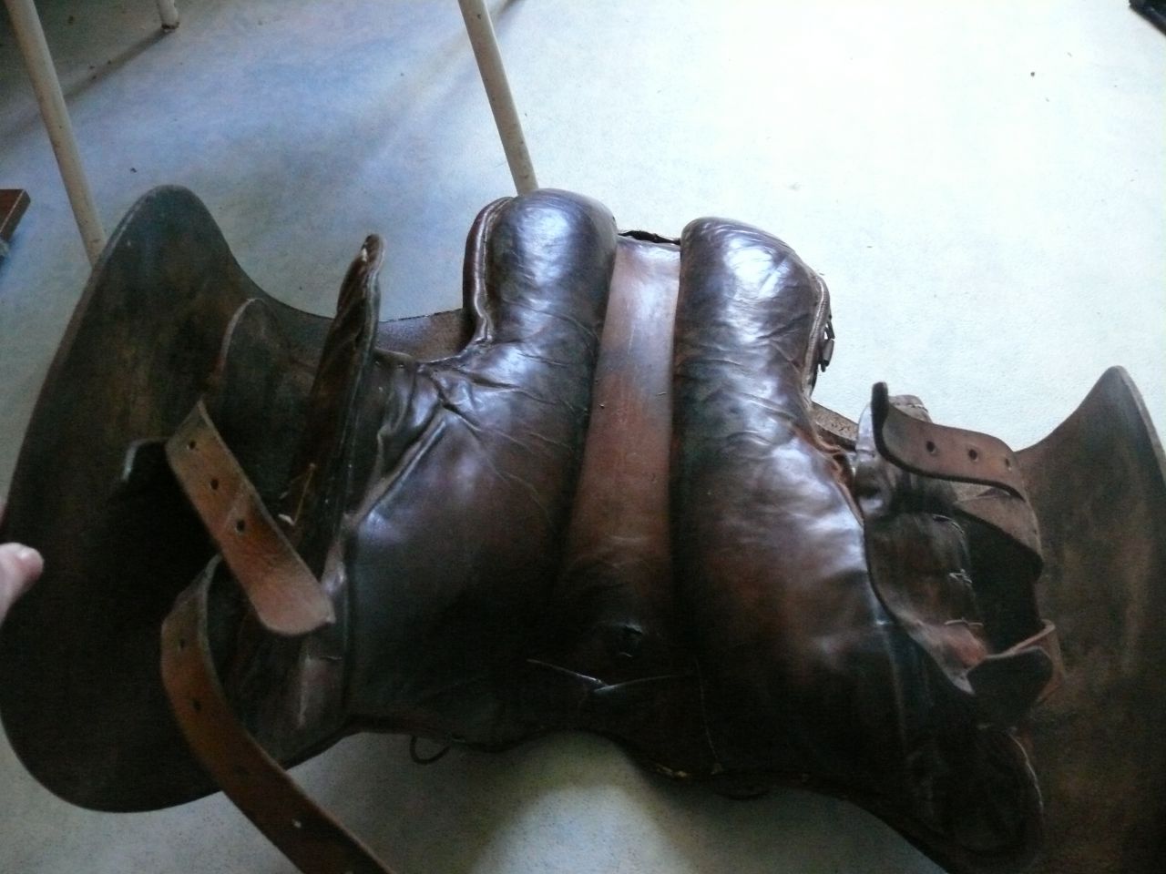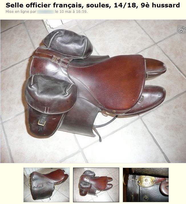 | Dire merci | Il s'agit d'une très belle 1884 d'officier , au 9ème Hussard, selon l'époque elle devrait être à palette. Les fontes sont dans le bon sens. Par contre c'est plus du double du prix couramment pratiqué, une Hermès atteindrai ces prix là mais une selle de sellier régimentaire, c'est surfait. Par contre, encore une fois, cela semble une très belle pièce avec une très belle patine sur la peau de cochon. |