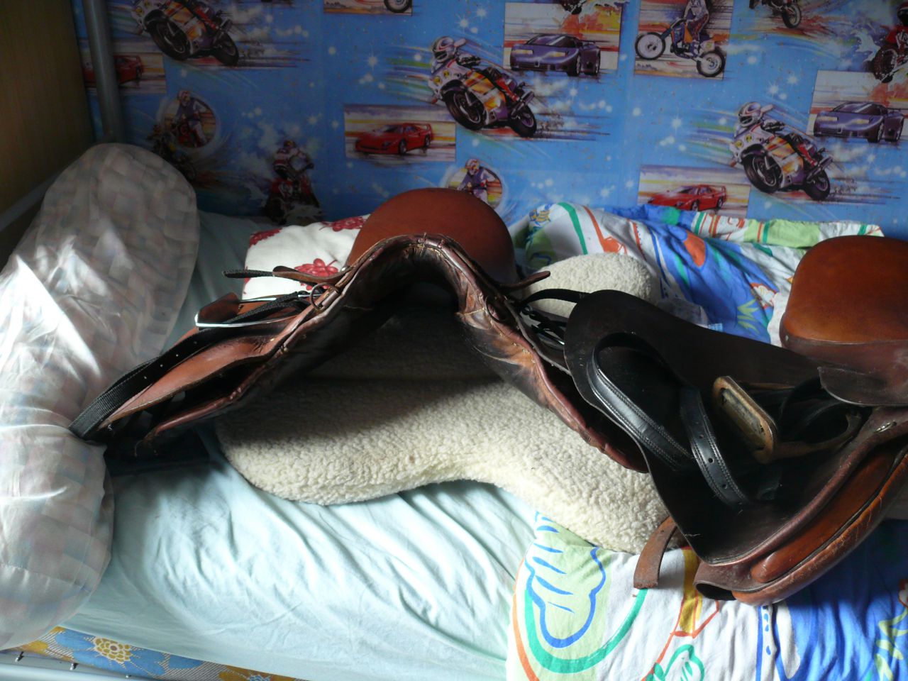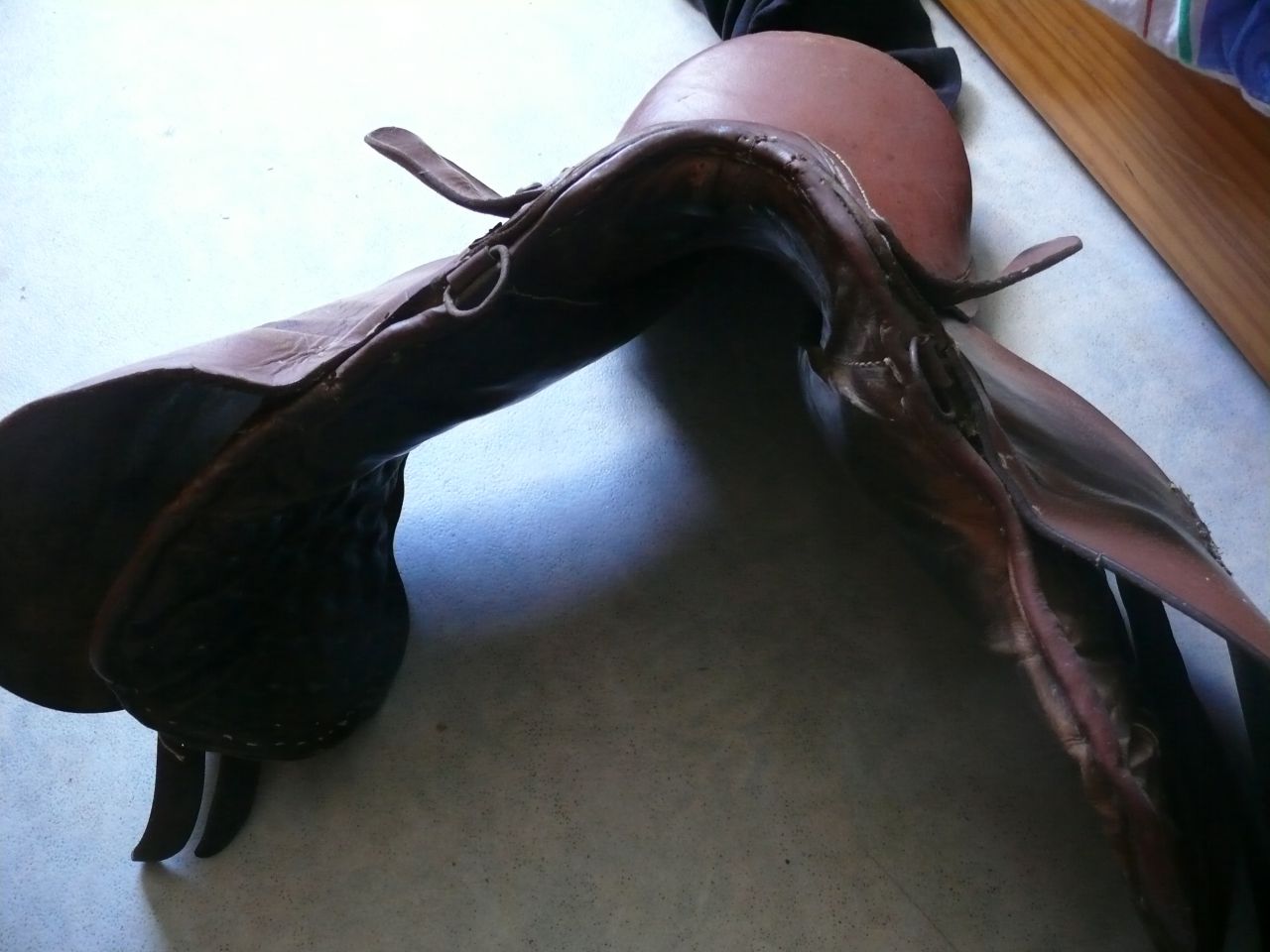 | Dire merci | Ca y est! Ma selle d'armes Portugaise est là La preuve en photo... ![]() ![]() Contre-sanglons neufs,jamais servis! ![]() Cuir un peu sec mais en bon état ![]() ![]() L'arçon: ![]() Un petit éclat mais pas de bêtes dans le bois: ![]() |