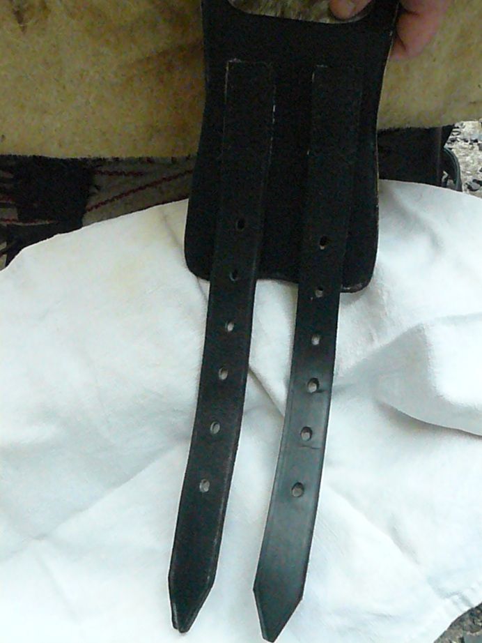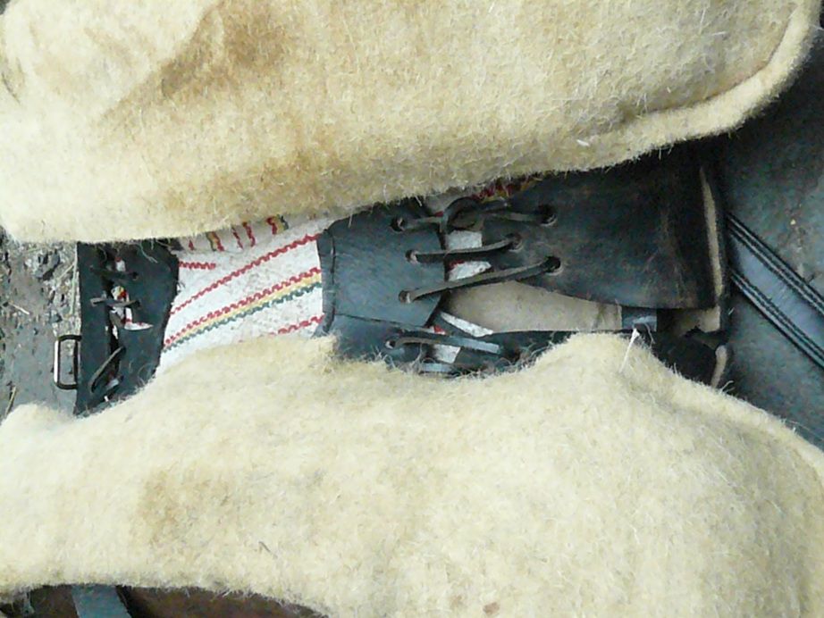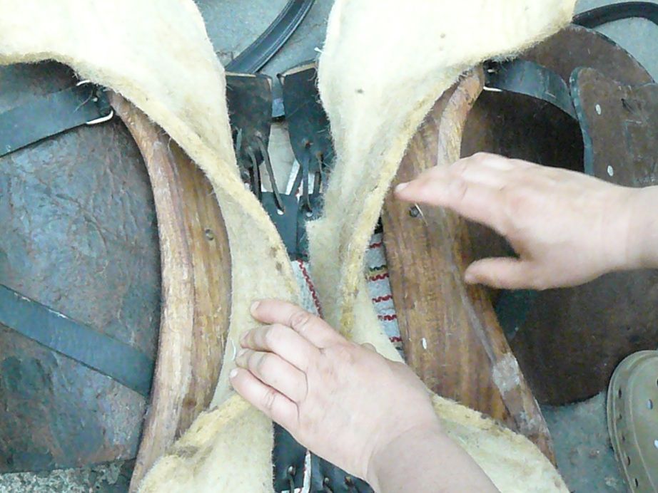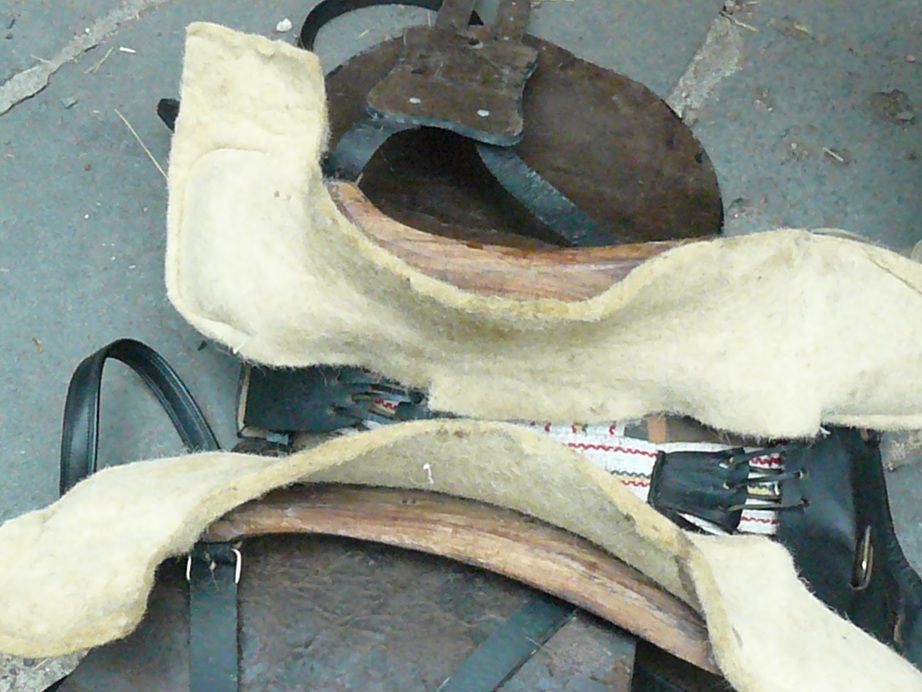 | Dire merci | Sur les selles Oner (et d'autres plus récentes, genre Hugues Petel) on trouve des matelassures faites dans un feutre de laine épais (genre sous-tapis western) "collé" à même l'arçon. (sur la Petel c'est une housse en cuir au dessus et en feutre en dessous facile à démonter, un peu comme les matelassures des selles d'armes allemande) Mais il faut évidemment que l'arçon épouse parfaitement la forme du dos puisqu'on ne sait pas retoucher la densité des matelassures dans ce cas. |