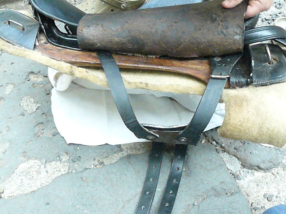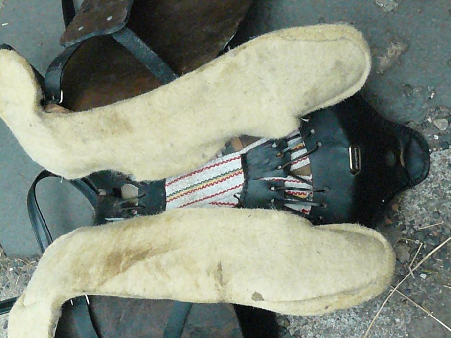| Dire merci | Bonjour à tous, Paquita, je ne sais pas si ça peut t'intéresser, mais je compte mettre en vente ma copie pakistanaise de selle d'arme en cuir bouilli... Je me suis fait vraiment avoir quand je l'ai achetée, je n'y connaissais rien, il faut dire. L'arçon est neuf par contre,facilement démontable et récupérable, mais il est lourd, mi acier, mi bois, et la selle ne comporte pas de matelassures, juste des patins en feutre. Tu peux aussi récupérer les sanglons. Elle n'a jamais servie, juste en déco. par contre ce type de selle convient aux dos longs et/ ou garrots saillants, type PS. Elle ne va pas du tout aux chevaux ronds, par exemple. Si elle avait pu convenir à mes deux gros (Comtois et haflinger) j'aurais sans doute tenté une restauration moi-même. MAIS, je sollicite l'avis de papyrus, pour savoir si une telle restauration vaut le coup, quand même. |