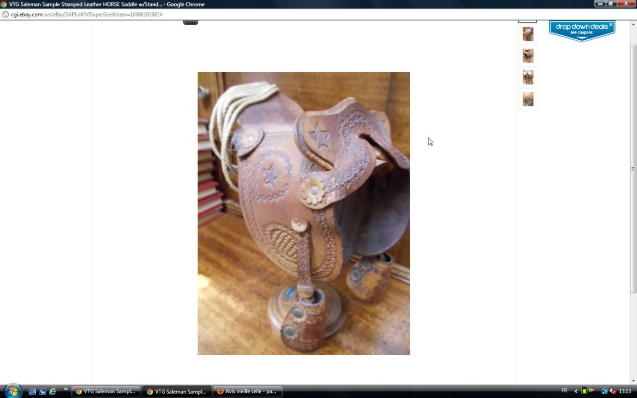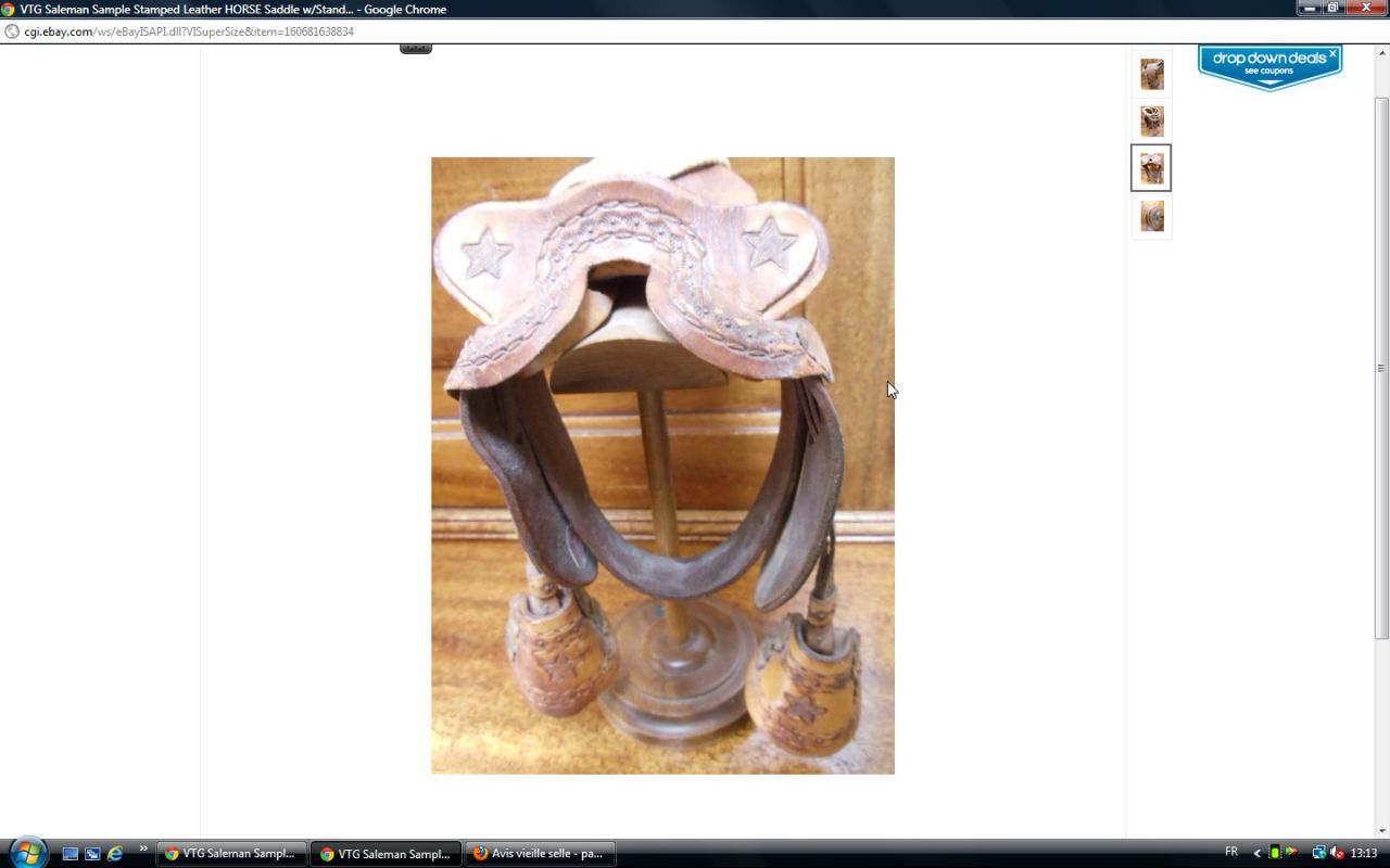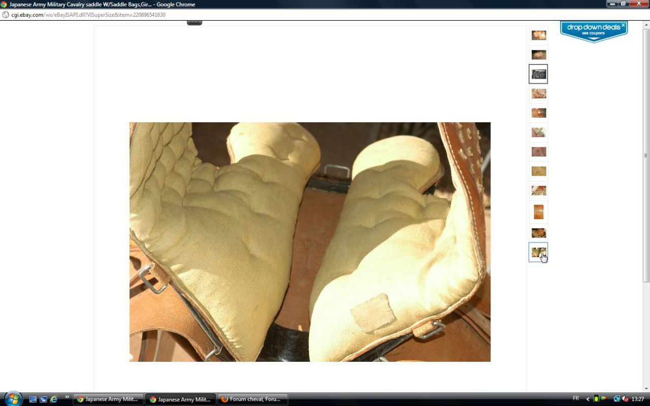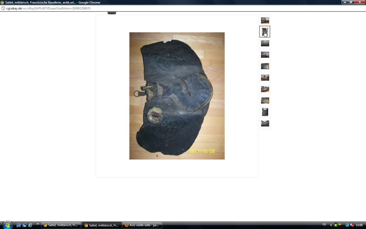 Déconnecté | j'aimerai avoir un avis visuel sur cette vieille selle : c'est moi ou une impression mais il me semble que les matelassures sous le pommeau sont décollées. J'essaie de comparer avec ma selle d'obstacle qui doit avoir le même âge et la vision n'est pas la même ( la mienne est en état : j'avais fait un post pour demander ce que c'était comme selle ). http://cgi.ebay.fr/SELLE-DE-CHEVAL-CUIR-VERITABLE-/250911014948?pt=FR_JG_Sports_Equitation_Cheval&hash=item3a6b764024 Ce message a été modifié par un modérateur.Ce message a été modifié par un modérateur. |