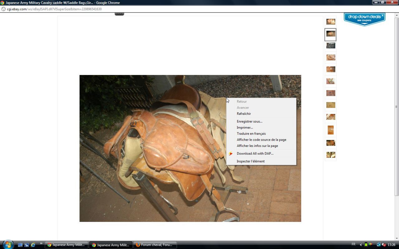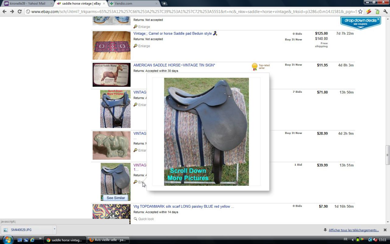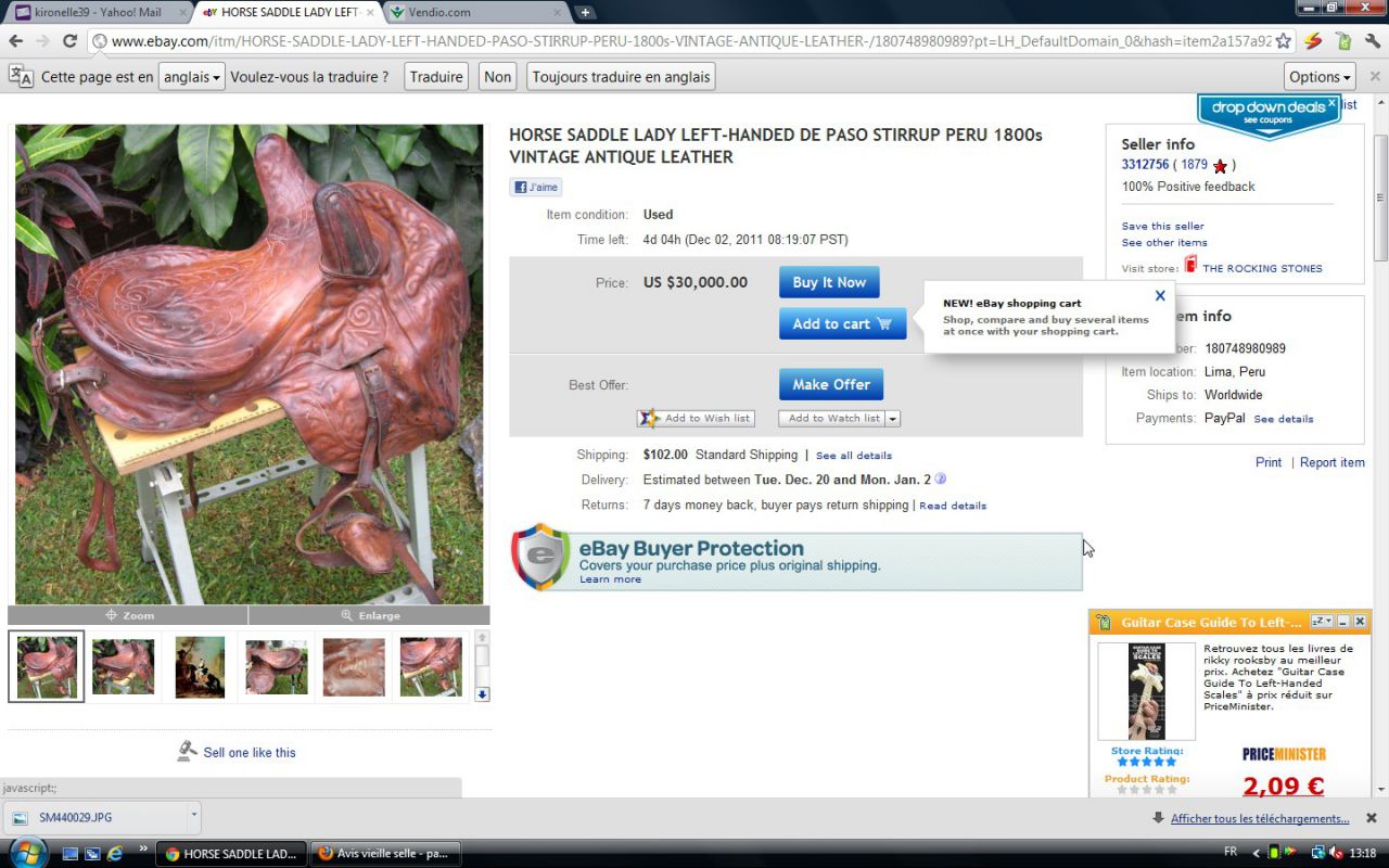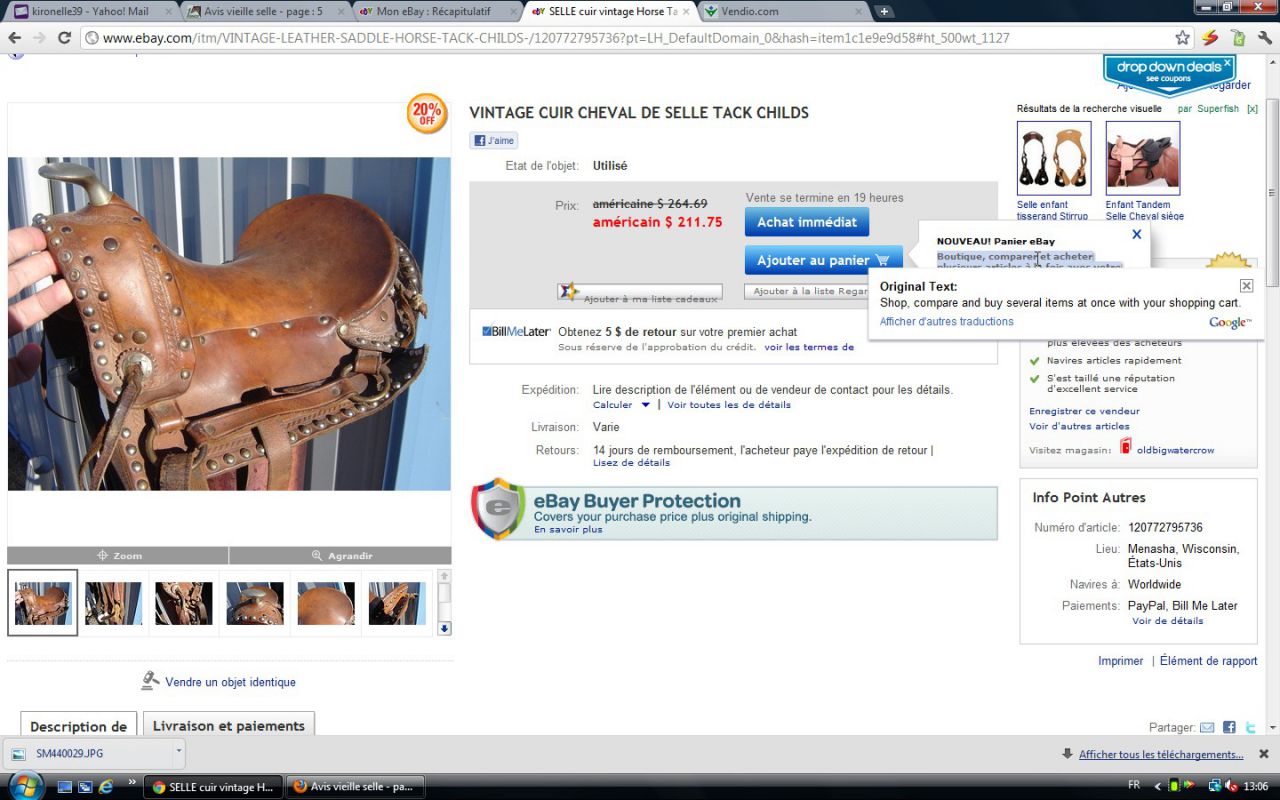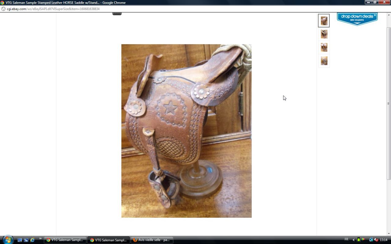 Déconnecté | j'aimerai avoir un avis visuel sur cette vieille selle : c'est moi ou une impression mais il me semble que les matelassures sous le pommeau sont décollées. J'essaie de comparer avec ma selle d'obstacle qui doit avoir le même âge et la vision n'est pas la même ( la mienne est en état : j'avais fait un post pour demander ce que c'était comme selle ). http://cgi.ebay.fr/SELLE-DE-CHEVAL-CUIR-VERITABLE-/250911014948?pt=FR_JG_Sports_Equitation_Cheval&hash=item3a6b764024 Ce message a été modifié par un modérateur.Ce message a été modifié par un modérateur. |
