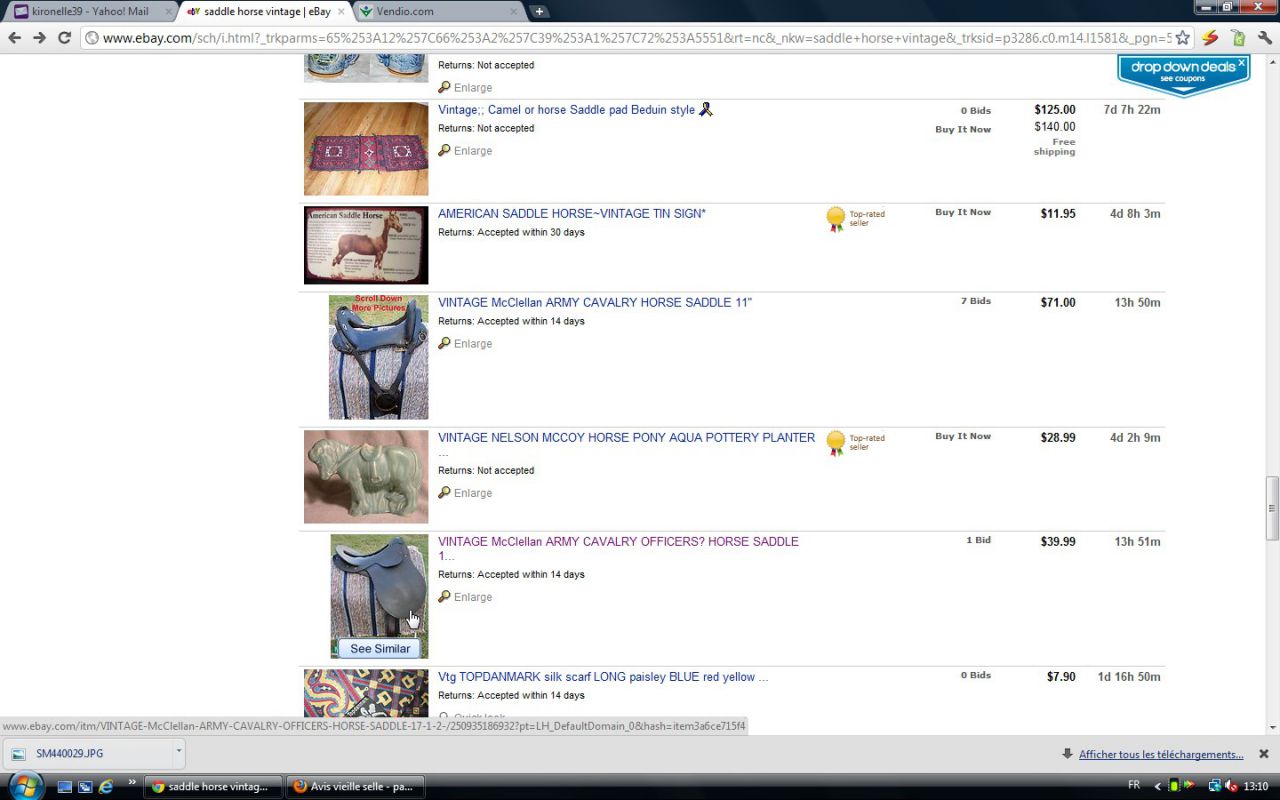 Déconnecté | En Côte d'Or ils sont à Norges la Ville et Chenôve ( le plus important est Norges la Ville ouvert le mercredi samedi et dimanche après midi ). On y trouve aussi du matériel d'équitation mais faut tomber dessus car il n'y en a pas tous les jours. Le matériel de pansage, étrivères, tapis et licols sont plus courants. |