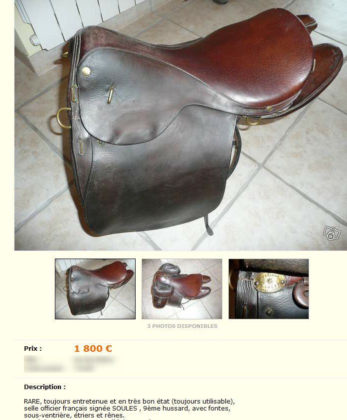 Déconnecté | j'aimerai avoir un avis visuel sur cette vieille selle : c'est moi ou une impression mais il me semble que les matelassures sous le pommeau sont décollées. J'essaie de comparer avec ma selle d'obstacle qui doit avoir le même âge et la vision n'est pas la même ( la mienne est en état : j'avais fait un post pour demander ce que c'était comme selle ). http://cgi.ebay.fr/SELLE-DE-CHEVAL-CUIR-VERITABLE-/250911014948?pt=FR_JG_Sports_Equitation_Cheval&hash=item3a6b764024 Ce message a été modifié par un modérateur.Ce message a été modifié par un modérateur. |
