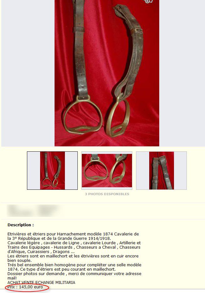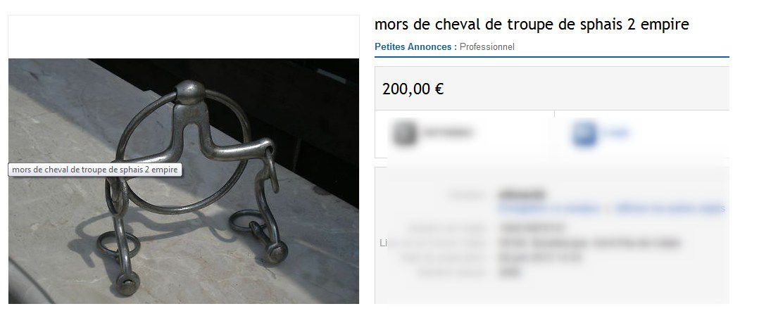 | Dire merci | Ce sont des sellettes de harnais pour chevaux porteurs (attelés aux brancards). Ca ne vaut que pour la décoration...on en trouve très facilement ![]() |