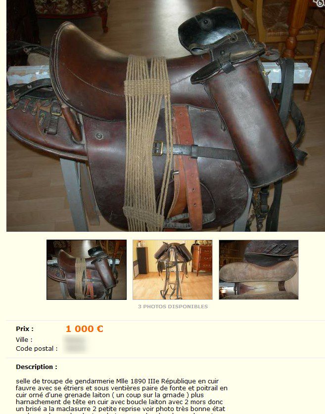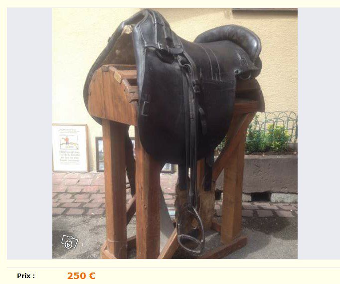 | Dire merci | Par respect, j'en ai deux, auquel je tiens et qui ne seront jamais modifiees pour etre utilisees... Elles ont une histoire en effet! Et meme si elles sont Allemande, la souffrance a ete la meme des deux cotes... Ma petite preference etant ma selle de train d'artillerie de la 1ere guerre...elle a certainement connue les tranchees car elle etait dans une grange a Verdin... |