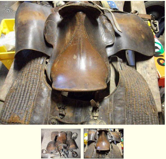 | Dire merci | J'ai eue ma selle!! Alors c'est bien celle de e-bay et en plus il y avait quelques accessoires: *2 Quartiers qui d'après le gars étaient a la selle mais en regardant de plus près ce sont deux quartiers différents et pas d'origine du tout! Ca finira a la découpe *2 faux quartiers d'origine ceux-là mais très secs. *2 porte contre sanglons d'origine aussi mais bien fatigués *3 contre sanglons epais comme des feuilles de papier mais inutilisables car trop fin a mon goût... *une sangle mais de tombereau.Je vais récupérer les boucles L'arçon est nickel! pas de bêtes ni de fissures.J'ai déjà commencé sa modification... Message édité le 27/07/12 à 09:17 |