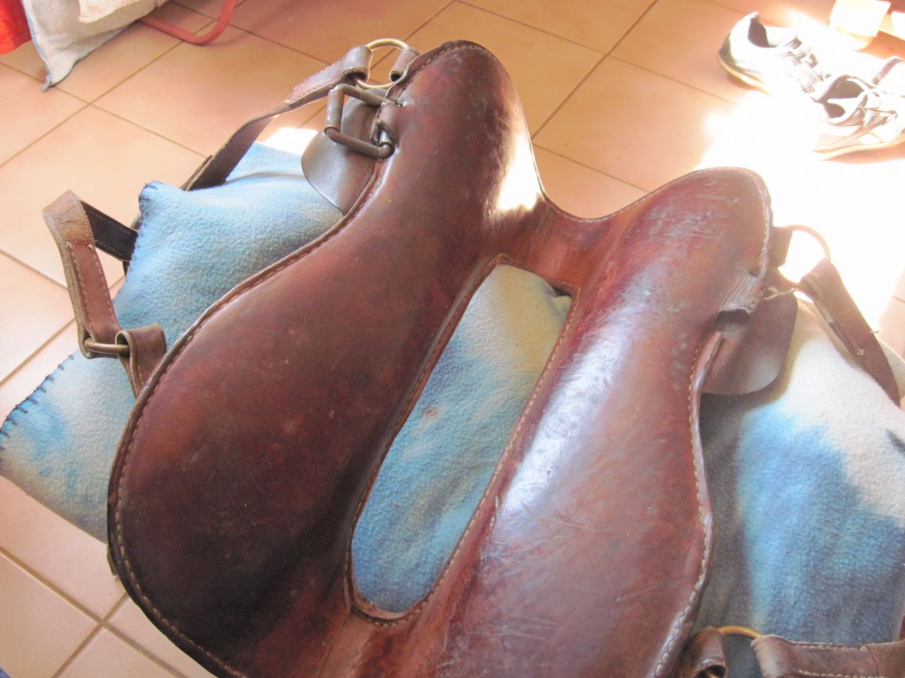 | Dire merci | Ca y est! Je l'ai la bête!!! ![]() ![]() ![]() Elle est en très bon état géneral sauf qu'il manque un anneau de porte etrivière, mais pour moi...ça va être vite arrangé! ![]() Pour l'instant,nettoyage et graissage car le cuir n'a jamais dût voir de la graisse de sa vie ![]() |