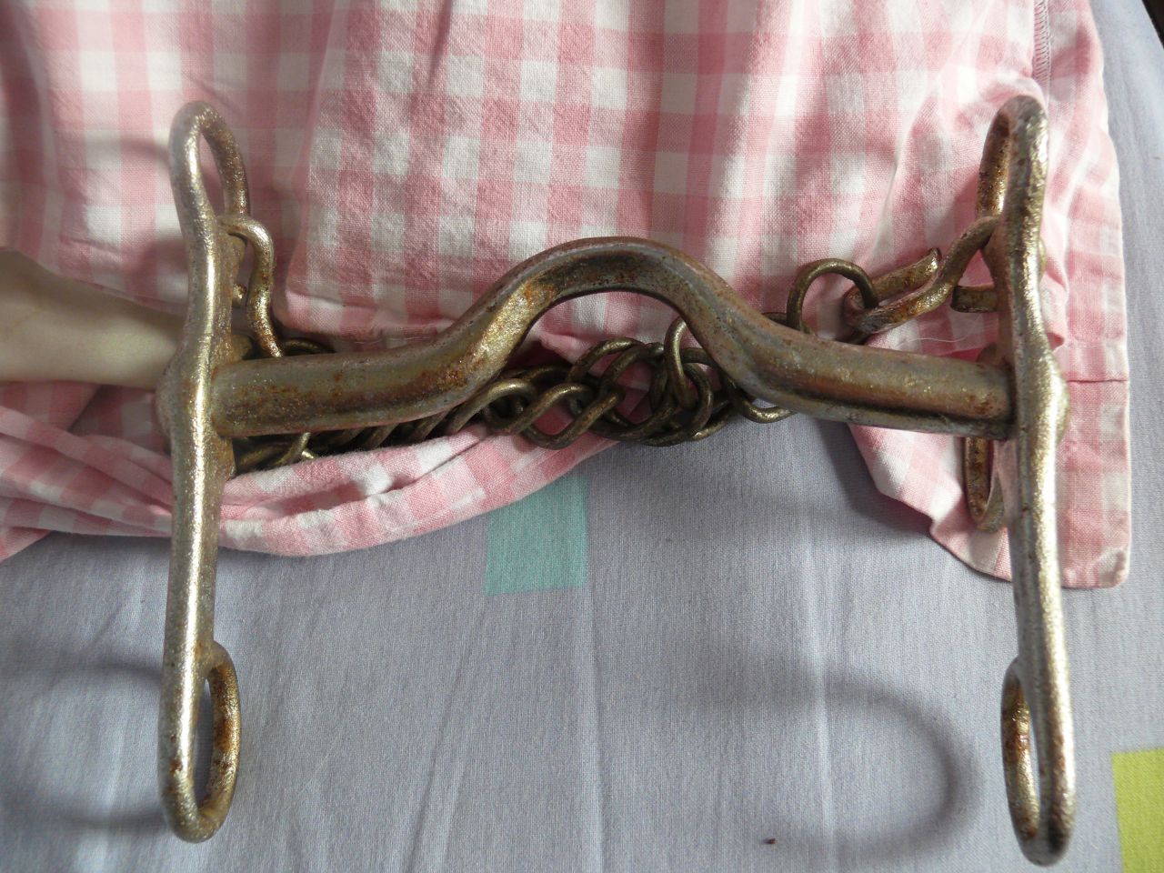 | Dire merci | Merci Papyrus, mon salon est déjà pas mal encombré, je connais ces affiches, je dois même en avoir, par contre j'ai une selle d'officier de chez Camille. Pour les mors, ceux d'en haut ne sont pas militaires Français, il n'y a pas de trous pour les rivets de bossettes. Ces mors similaires au Pelham ont été très courants fin 19ème début 20ème. Photos d'en bas: 1/ mors agricole je pense. 2/Mors de voiture pour cheval (Jaillant). 3/ j'ai exactement le même qui vient d'une écurie de course de trotteurs. Les branches ressemblent de loin au mors Allemand. Des jouets de langue sur un mors de troupe ????, même Allemand !.... 4/ je ne veux même pas en entendre parler. |