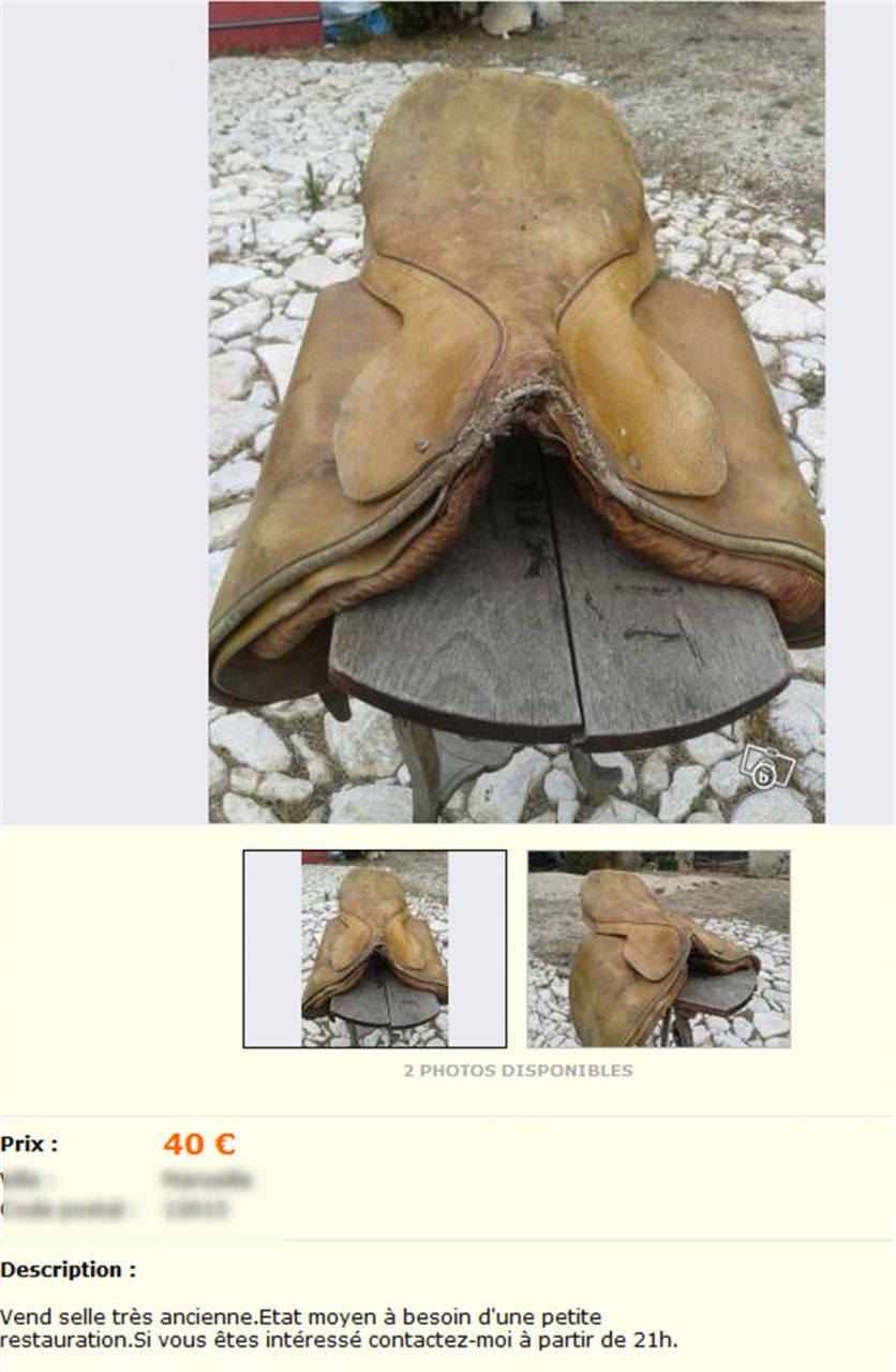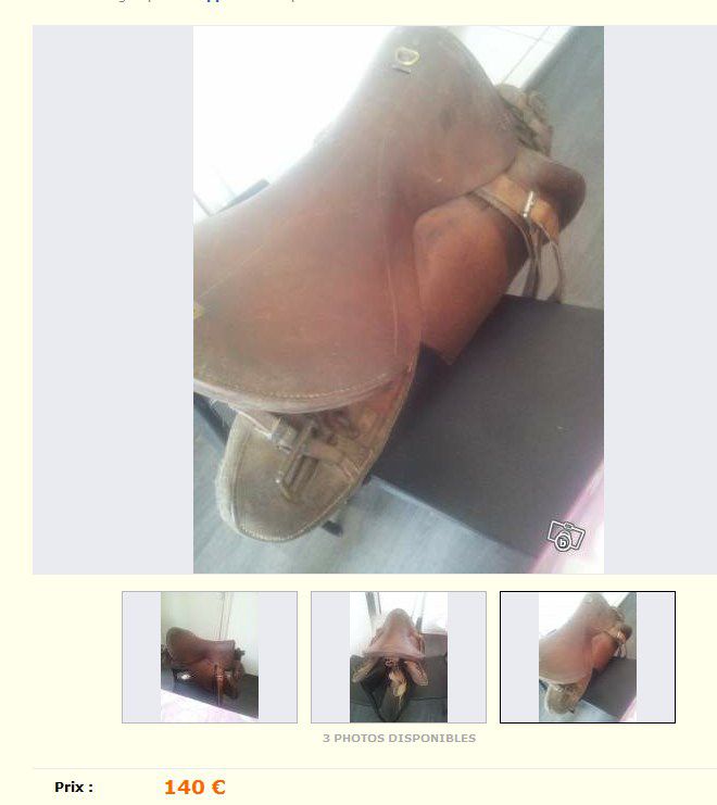 Déconnecté | j'aimerai avoir un avis visuel sur cette vieille selle : c'est moi ou une impression mais il me semble que les matelassures sous le pommeau sont décollées. J'essaie de comparer avec ma selle d'obstacle qui doit avoir le même âge et la vision n'est pas la même ( la mienne est en état : j'avais fait un post pour demander ce que c'était comme selle ). http://cgi.ebay.fr/SELLE-DE-CHEVAL-CUIR-VERITABLE-/250911014948?pt=FR_JG_Sports_Equitation_Cheval&hash=item3a6b764024 Ce message a été modifié par un modérateur.Ce message a été modifié par un modérateur. |