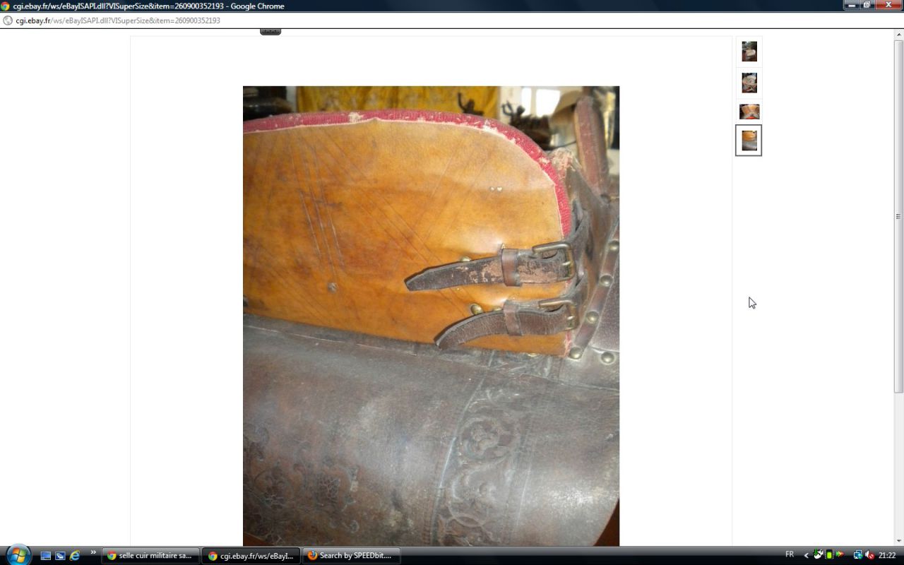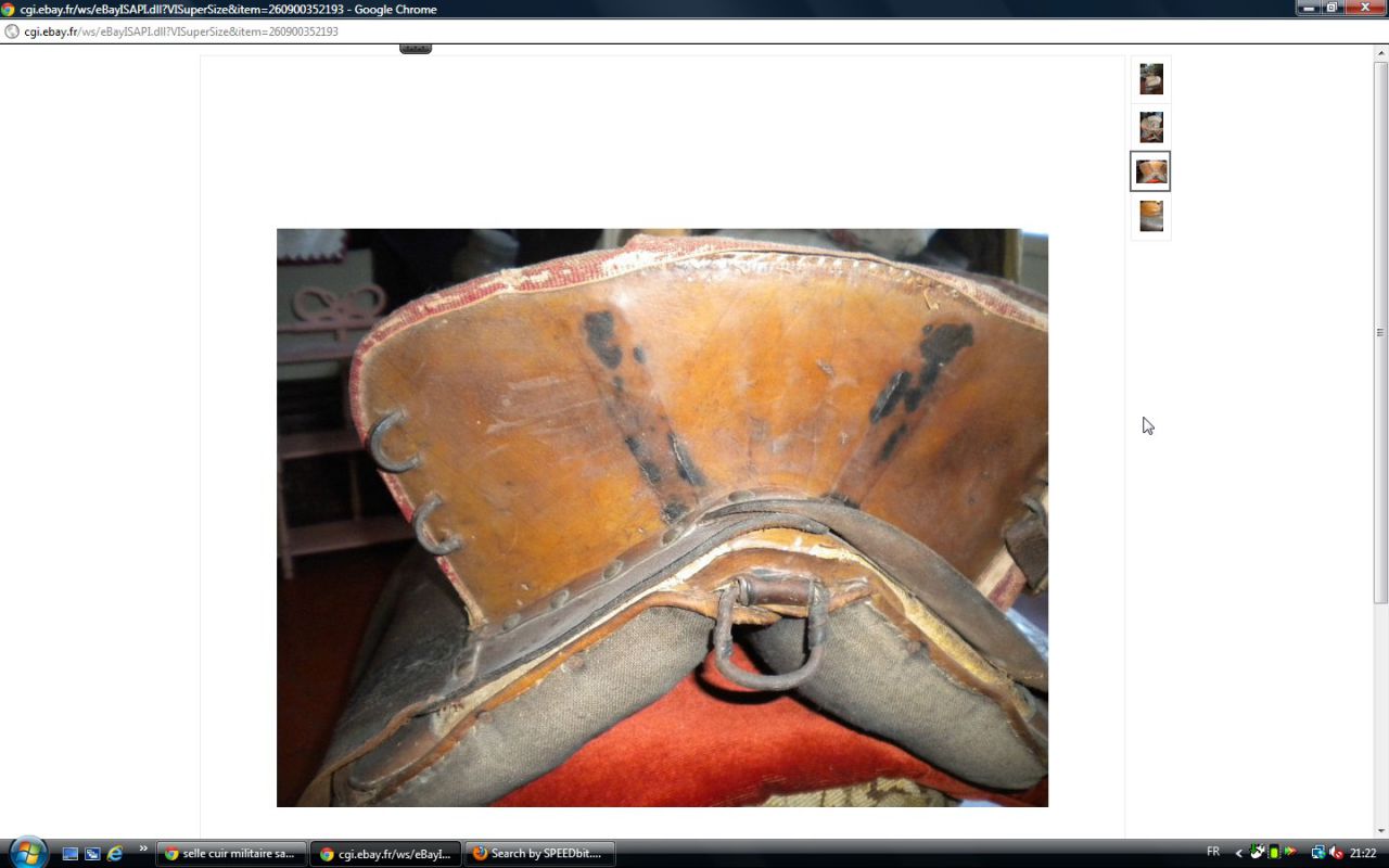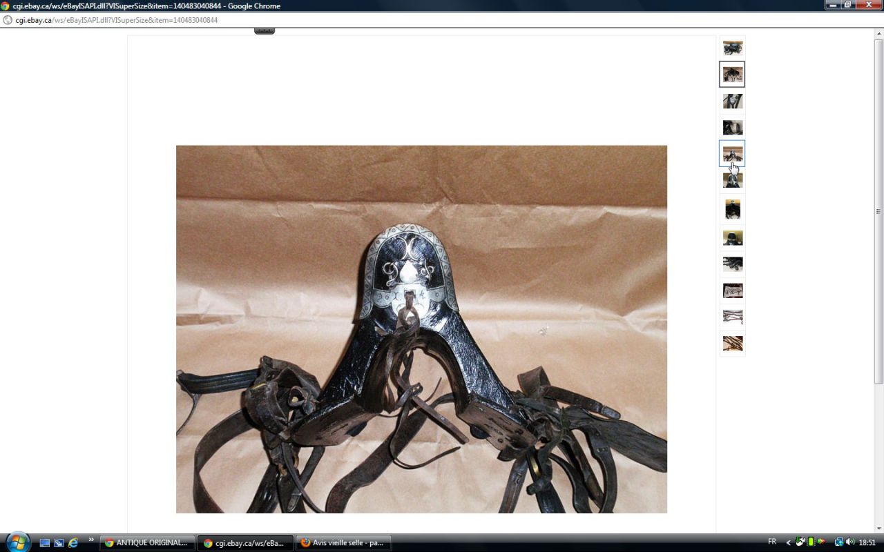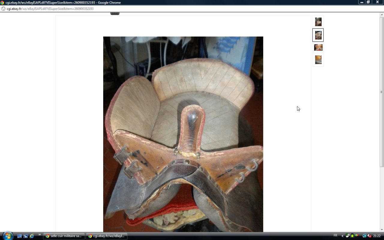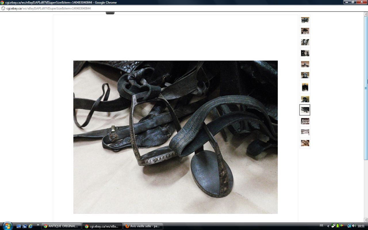 Déconnecté | j'aimerai avoir un avis visuel sur cette vieille selle : c'est moi ou une impression mais il me semble que les matelassures sous le pommeau sont décollées. J'essaie de comparer avec ma selle d'obstacle qui doit avoir le même âge et la vision n'est pas la même ( la mienne est en état : j'avais fait un post pour demander ce que c'était comme selle ). http://cgi.ebay.fr/SELLE-DE-CHEVAL-CUIR-VERITABLE-/250911014948?pt=FR_JG_Sports_Equitation_Cheval&hash=item3a6b764024 Ce message a été modifié par un modérateur.Ce message a été modifié par un modérateur. |