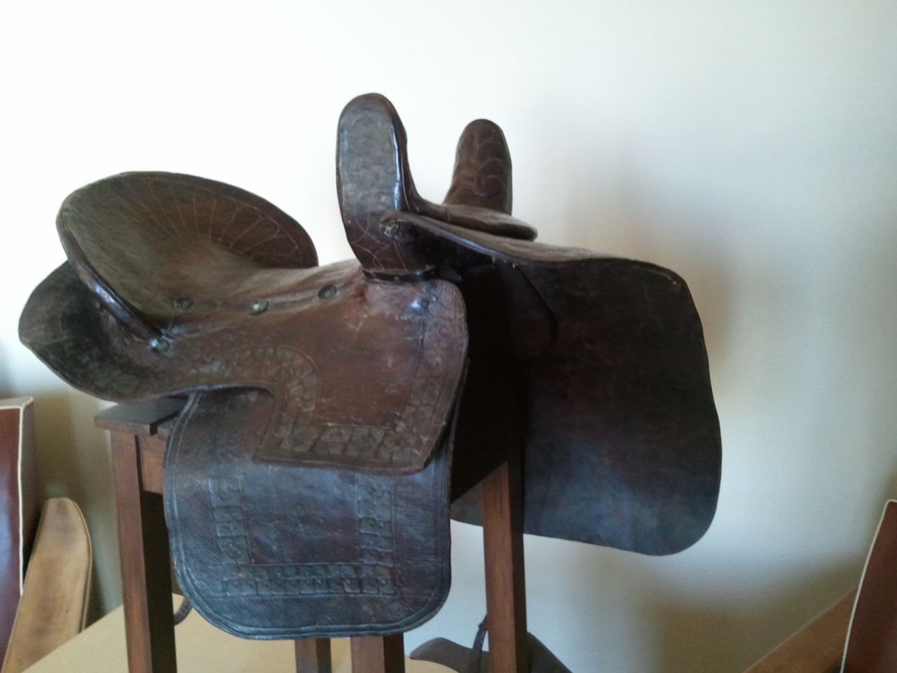| Dire merci | Je vous remercie pour votre appréciation. Cela dit, je crois comprendre quela plupart d'entre vous acquièrent des selles anciennes en vue de les ré-utiliser. Je vous le déconseille, et ce, pour plusieurs raisons : 1°) un objet a un vécu et une histoire toute personnelle, 2°) l'état dans lequel il nous parvient, s'il mérite un bon décrassage, n'appelle pas à une restauration par un Homme de l'Art car il y aura alors une "dichotomie" entre le cuir d'époque... et le cuir "remonté" 3°) et, c'est là la raison principale, le temps a considérablement affaibli la matière organique qu'est le cuir et les risques de casse et donc de chute sont très importants. 4°) bien des membres de ce forum semblent être attirés par les selles allemandes de la 2ème Guerre Mondiale. Sachez qu'il s'en trouve en très grand nombre et qu'il n'est nul besoin de se jeter sur la première venue à n'importe quel prix ou dans un état plus que douteux. Si vous êtes animé(e)s par l'esprit de collection, je vous livre ma philosophie - qui m'aide souvent à relativiser certaines déceptions - par rapport aux objets recherchés : Je ne suis que le propriétaire MOMENTANEMENT PRIVILEGIE de tout objet qui entre chez moi. cet objet a déjà appartenu à quelqu'un et appartiendra plus tard à quelqu'un d'autre. S'il est venu jusqu'à moi, c'est que cela devait être ainsi. j'en veux pour preuve le fait qu'il y a très peu de temps, un membre a mis sur ce forum un lien vers une selle en vente sur LBC. Personne n'a décelé l'intérêt de l'objet... sauf moi, plus de 3 semaines après votre discussion à son propos. Demandez à LAFOUINE ce que c'était. Il vous racontera l'aventure. (cela dit, en toute modestie et simplement pour illustrer mon propos "philosophique" de la collectionnite. Par contre, j'ai été nul en ce qui concerne la selle anglaise à palette en bois de 1856... que j'ai laissé passer. Il faut dire que je n'avais pas les sous pour cela (35 €uros) car je l'aurai quand même achetée mais, quand on est "raide", on est "raide". Tenez, pour le fun, je vous en remets une du côté hors montoir [url=https://www.1cheval.com/membre/services/photos/images/140549.jpg] ![]() [/url] |