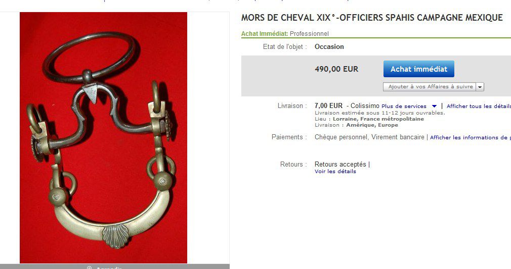 | Dire merci | si oui alors les mors à double brisure ne sont pas récents On n'a rien inventé...Tout avait déjà été testé! J'ai eue un ami cavalier qui montait aux usa et le side était utilisé depuis longtemps ...La récado est l'ancêtre de la selle sans arçon (tout comme ma selle d'artillerie de la première guerre mondiale). |